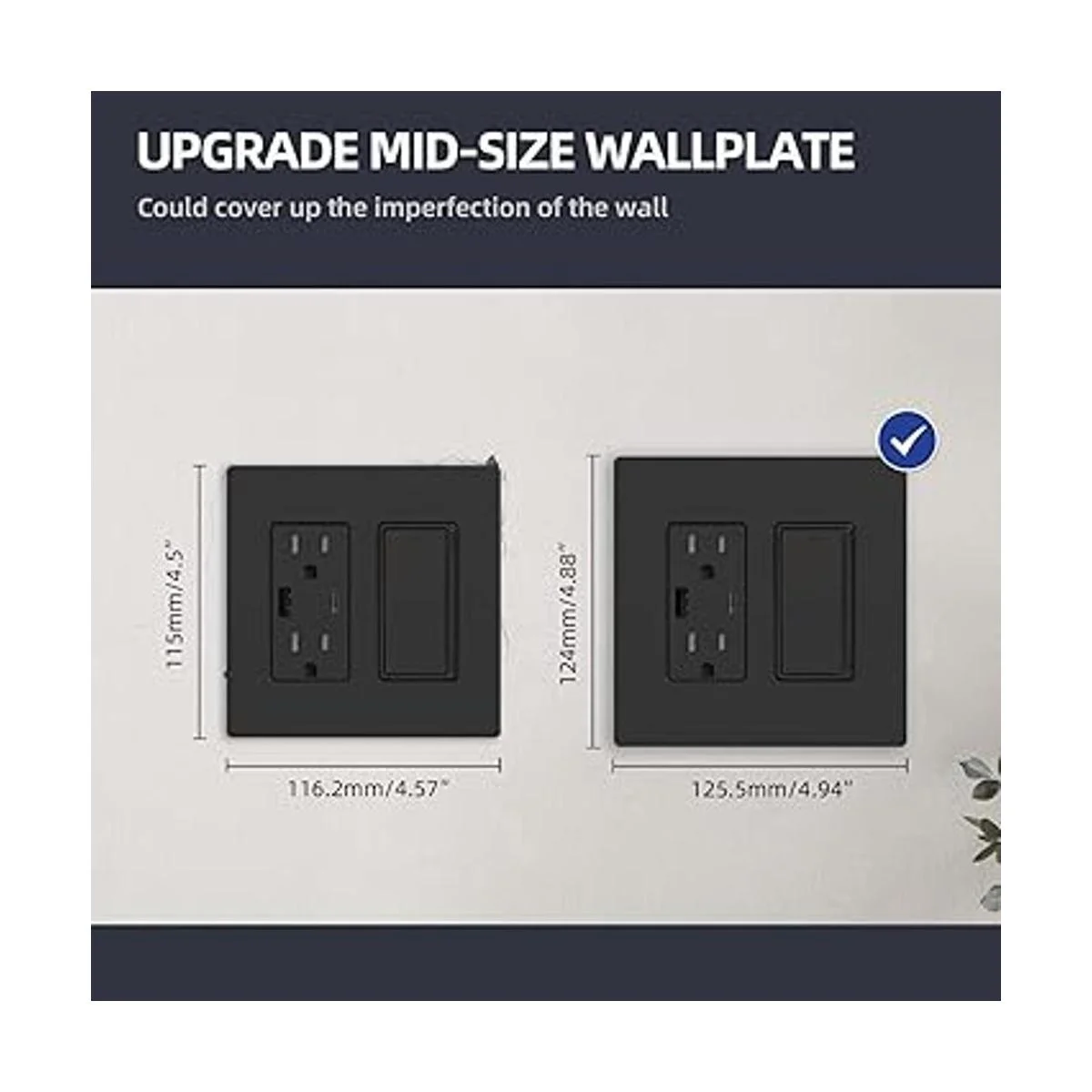 Aspecto moderno: el diseño de tornillo invisible crea un aspecto moderno sin costuras en tu hogar. Eleva al instante el aspecto de tomas a juego, receptáculos, interruptores de luz, GFCI, salidas USB, temporizadores, reguladores, sensores y otros dispositivos de cableado decorativos de tamaño estándar, y son adecuados para el reemplazo de cualquier placa de pared de la misma configuración.