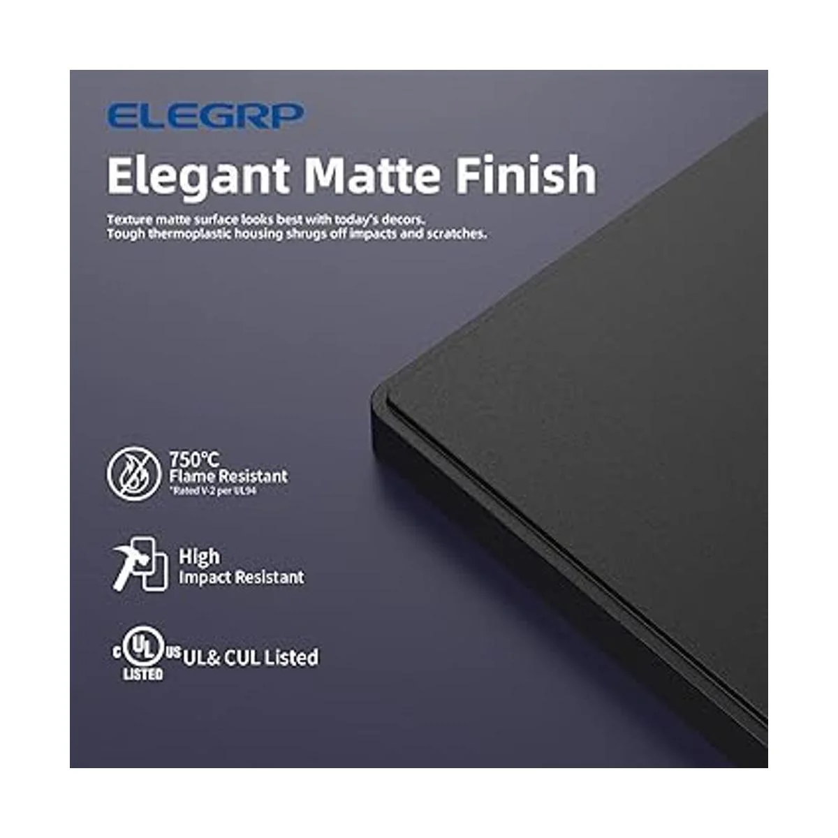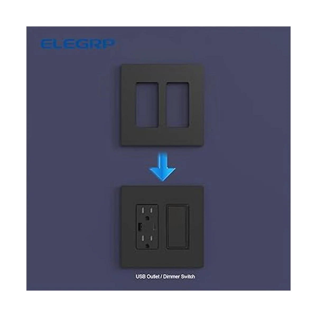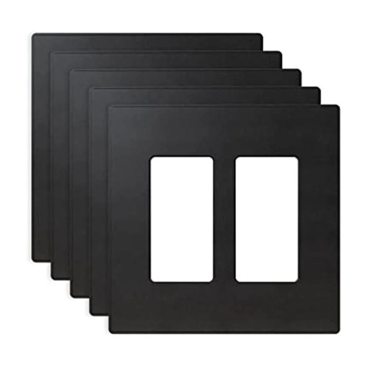 ELEGRP Placas de pared decorativas sin tornillos de 2 bandas, cubierta termoplástico irrompible de tamaño medio para interruptor de salida de receptáculo, certificación UL paquete de 5, negro mate