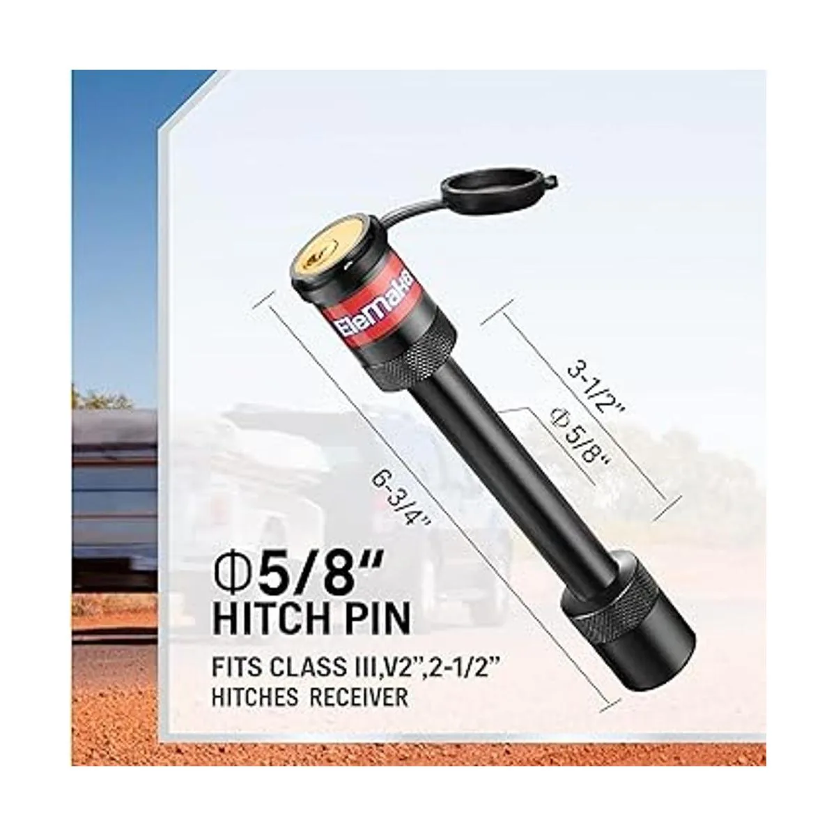 Elemake Cerradura de pasador de enganche Cerradura de enganche de remolque de 58 pulgadas, mecanismo de bloqueo de núcleo de latón resistente, resistente a la intemperie, antirrobo, 312 pulgadas de longitud se adapta a enganches de clase III, IV, V