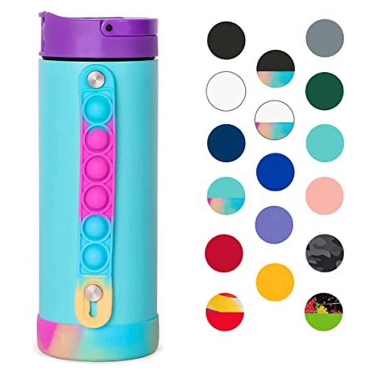 La primera botella antiestrés sobre la marcha del mundo: con su exclusivo mango PopIt que aumenta el enfoque y alivia el estrés, también es un mango totalmente extraíble e intercambiable que hace que sea fácil de enganchar en una mochila o bolsa de deporte, por lo que puede ir a cualquier lugar que vayan sin perderse.
