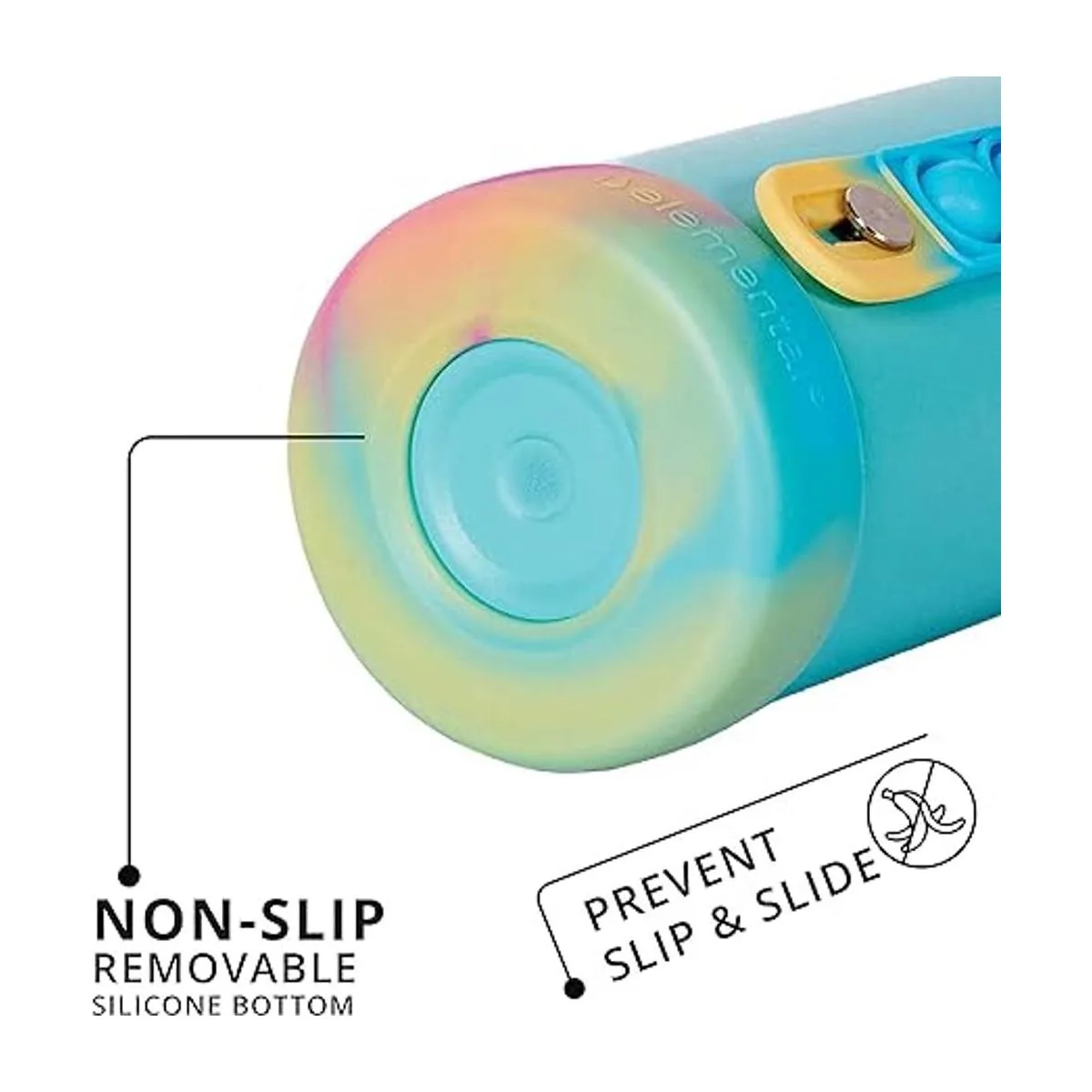 Presentamos la icónica botella antiestrés de 14 onzas de Elemental que cuenta con un mango con burbujas elevadas que hacen un sonido estallido cuando se empuja que puede aliviar el estrés durante todo el día