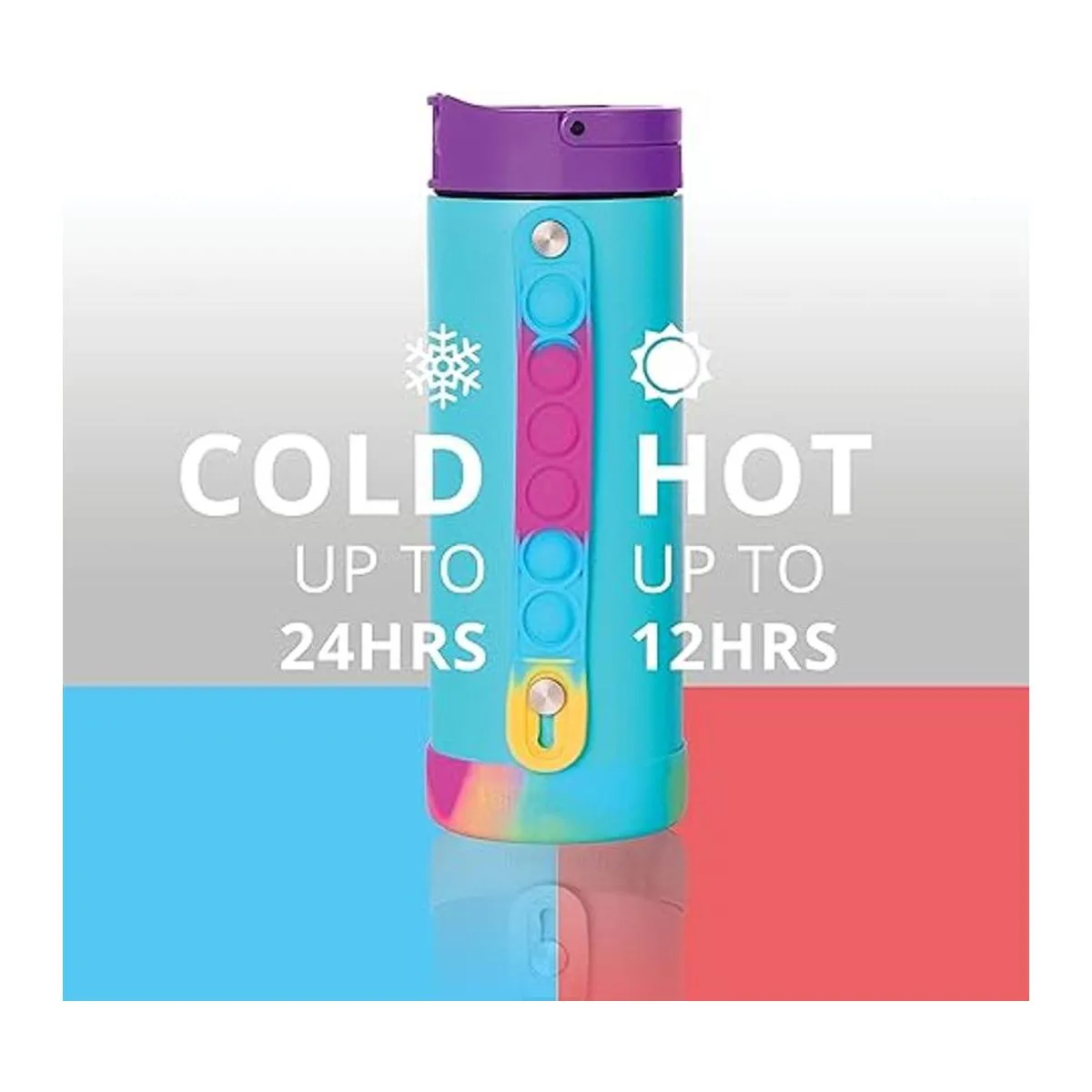 Botella de agua con aislamiento de triple pared, adiós al sudor Fabricada con tecnología TrueBarrier de aislamiento superior y aislamiento de cobre, nuestra botella de agua Fidget Pop mantiene tus bebidas frías hasta 24 horas, asegurando que las bebidas permanezcan a una temperatura constante durante todo el día.