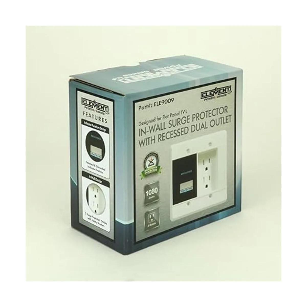 ElementHz Power Series Protector de sobretensiones para pared con doble salida empotrada, 1080 julios