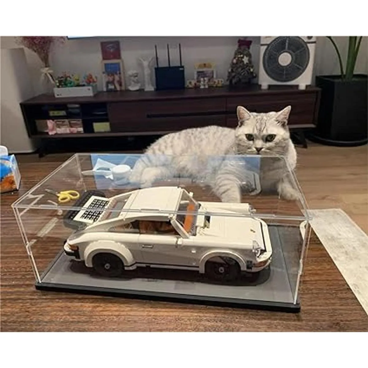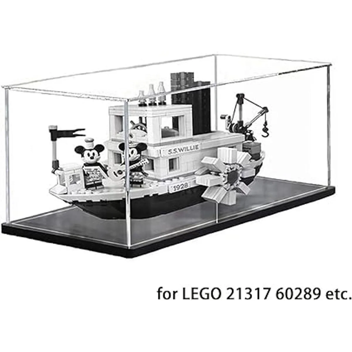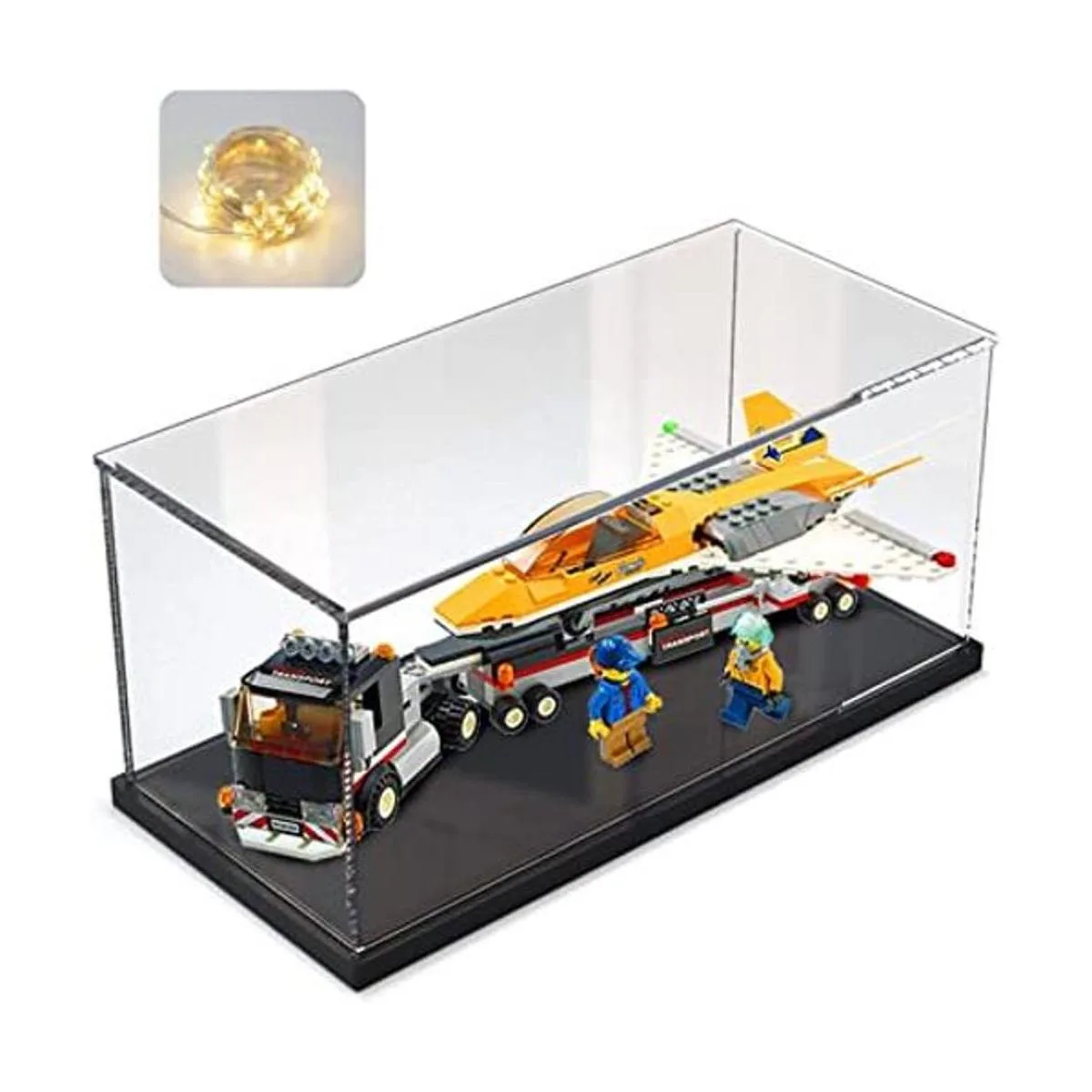 ELEpure Vitrina de acrílico transparente para juguetes coleccionables Lego 10265 21317, montaje de caja de acrílico a prueba de polvo con base de plástico de madera negra y cuentas de lámpara de 15.7 x 7.9 x 7.9 pulgadas