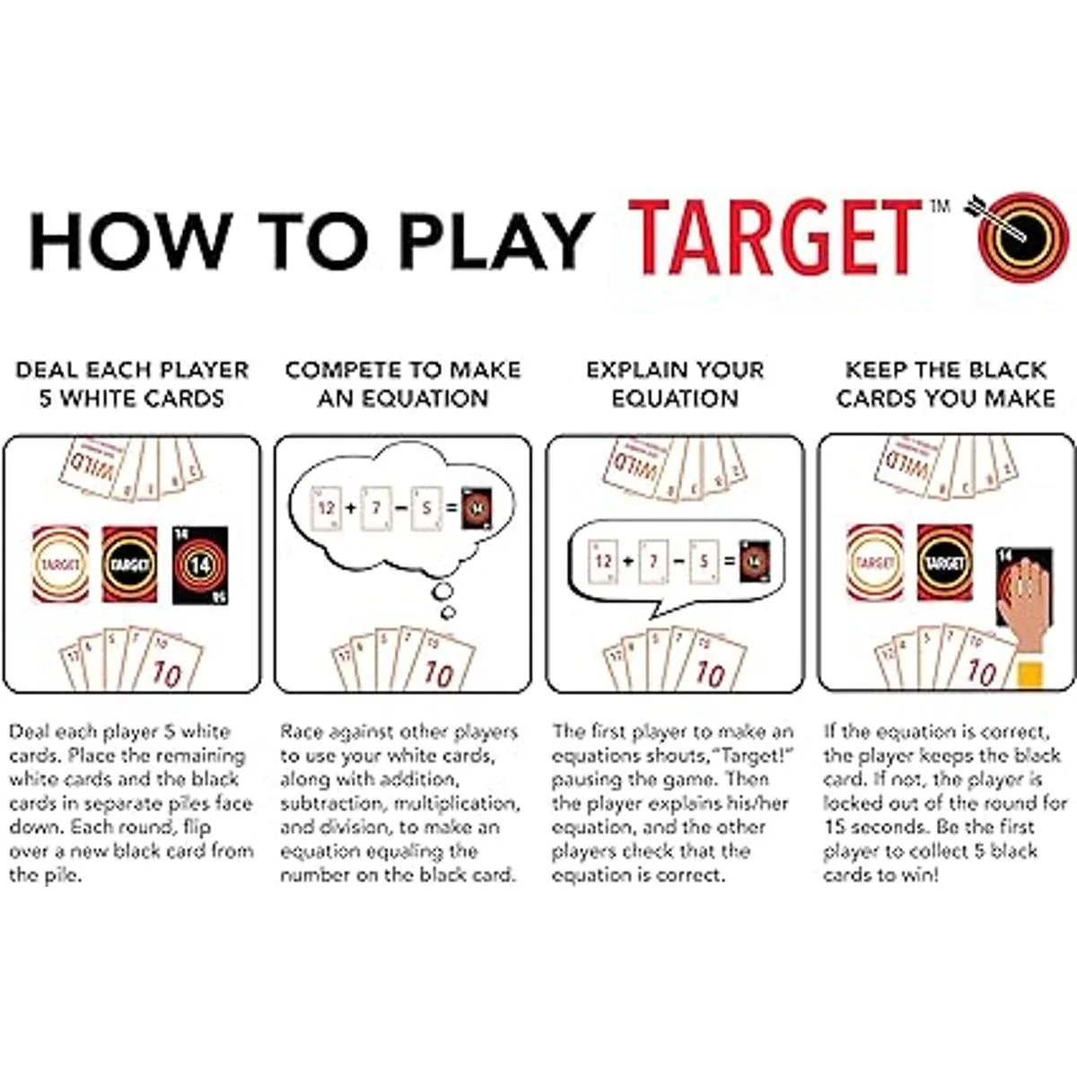 Perfecto para 26 jugadores de 8 a 108 años: el objetivo no es solo para niños Cientos de adultos están de acuerdo en que Target es una forma divertida y desafiante de mantener tus habilidades matemáticas y razonamiento afiladas.