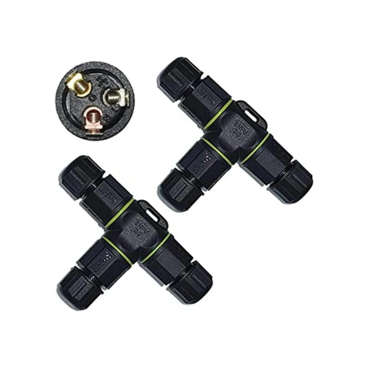 Seguridad eléctrica: caja de derivación eléctrica de 3 vías y 3 cables y conector eléctrico de 3 pines para tamaño del cable: diámetro de 4,5 a 0.394 in. Compatible con conector impermeable de baja corriente continua y alta potencia de A/C, nuestro conector impermeable se puede utilizar para 3 núcleos