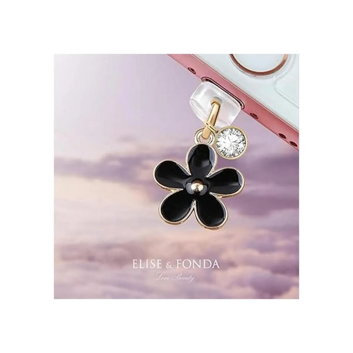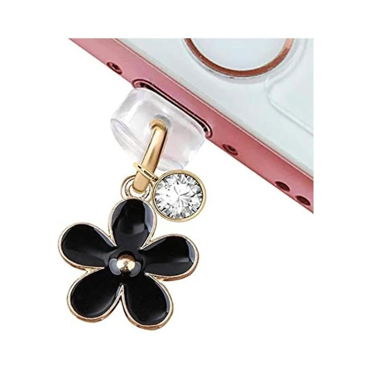 ELISE FONDA CP109 Puerto de carga USB antipolvo, colgante de flor de lirio pequeño para iPhone 11XS MAXXRX8 Plus76S7SE iPad iPod negro, 2 cm H x 2cm W x 0.2 cm D, Zinc, estrás