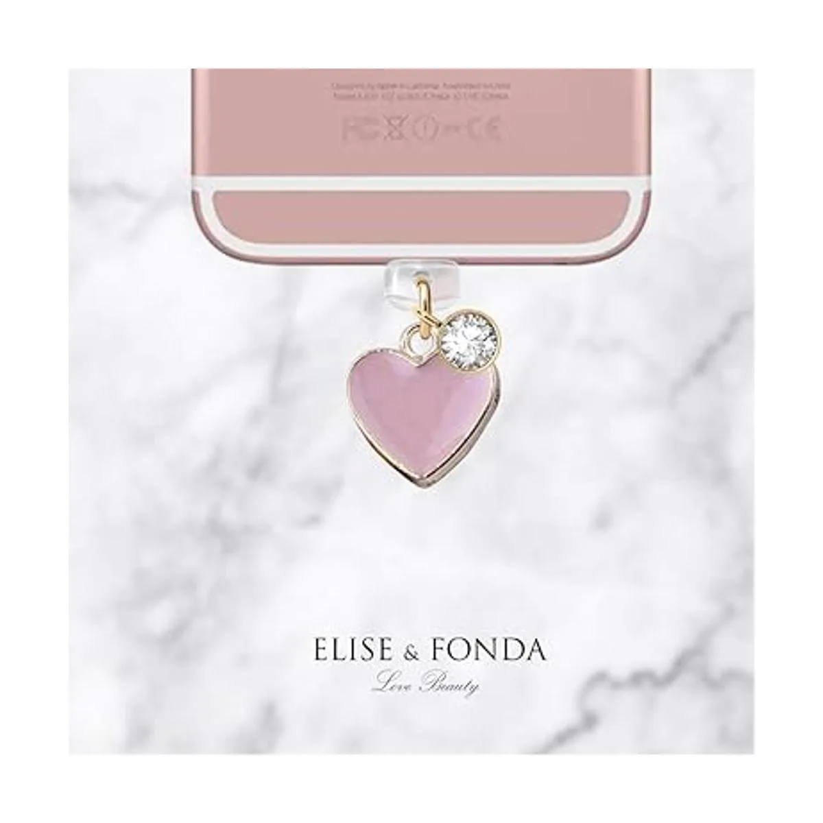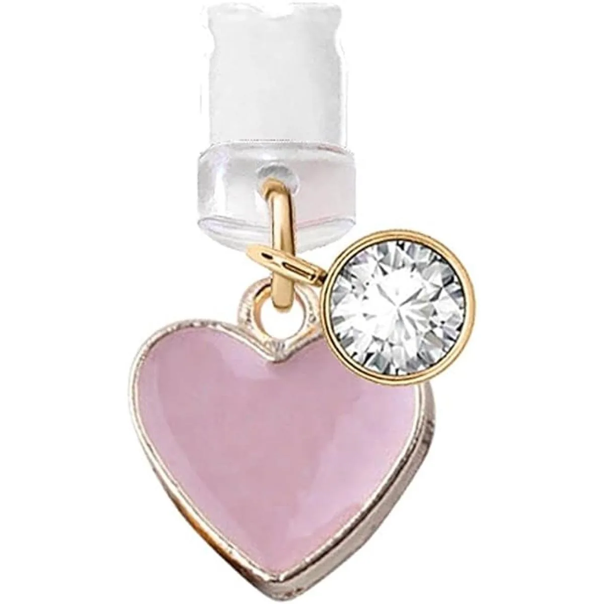 ELISE FONDA CP143 Puerto de carga USB antipolvo, colgante de corazón rosa para iPhone 11XS MAXXRX8 Plus76S7SE iPad iPod, 1.5 cm H x 1.5 cm W x 0.2 cm D, Zinc, estrás