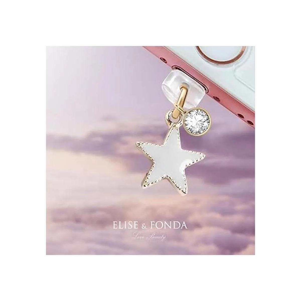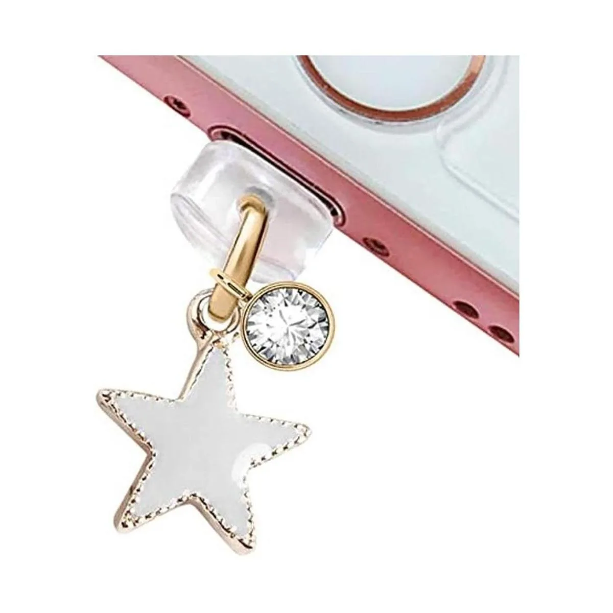 ELISE FONDA CP150 Puerto de carga USB antipolvo, enchufe lindo con colgante de estrella, para iPhone 11XS MAXXRX8 Plus76S7SE iPad iPod gris, 1.5 cm H x 1.5 cm W x 0.2 cm D, Zinc, estrás