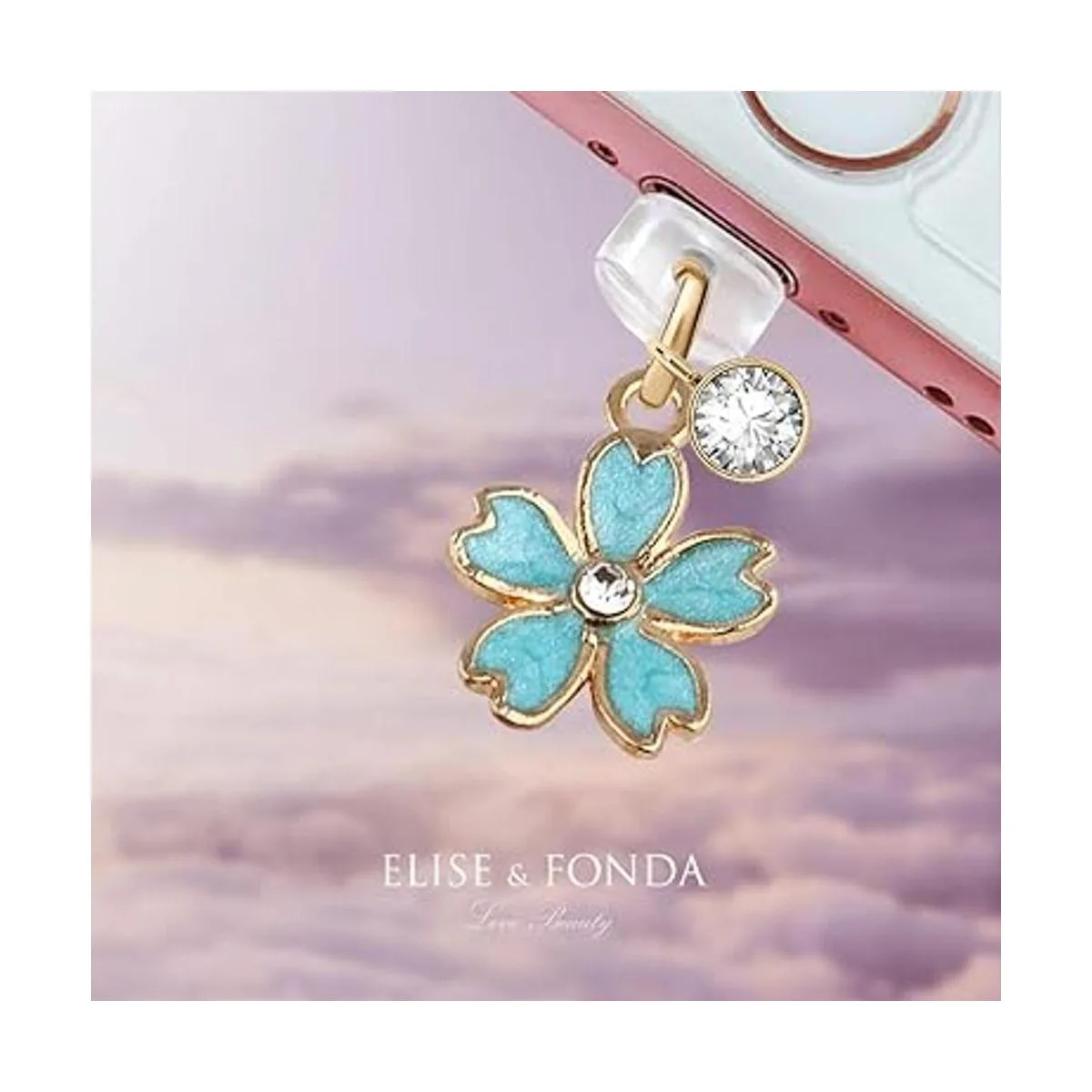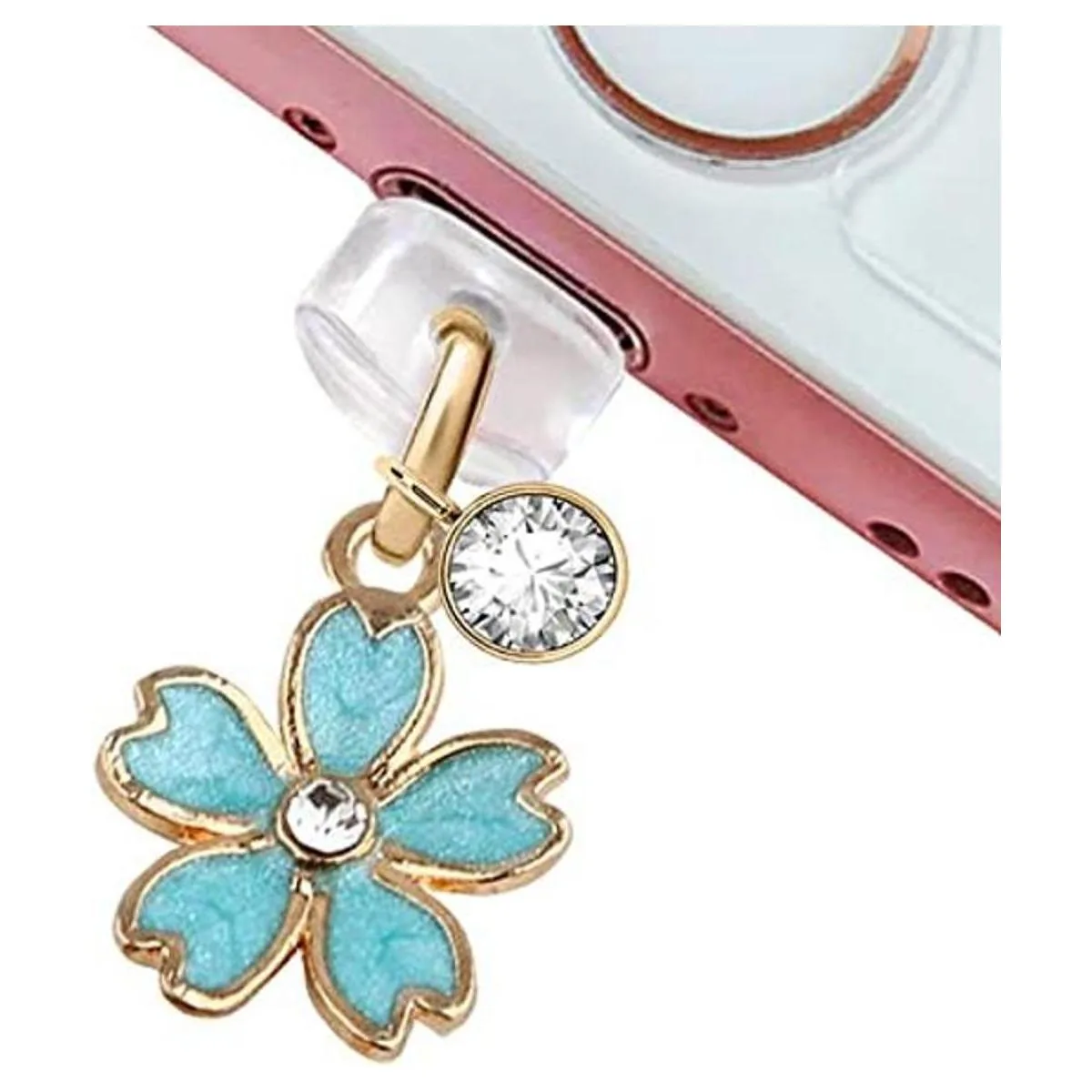 ELISE FONDA CP162 Puerto de carga USB antipolvo, diminuto colgante de flor de cerezo para iPhone 11XS MAXXRX8 Plus76S7SE iPad iPod azul, 1.4 cm H x 1.4 cm W x 0.15 cm D, Zinc, estrás