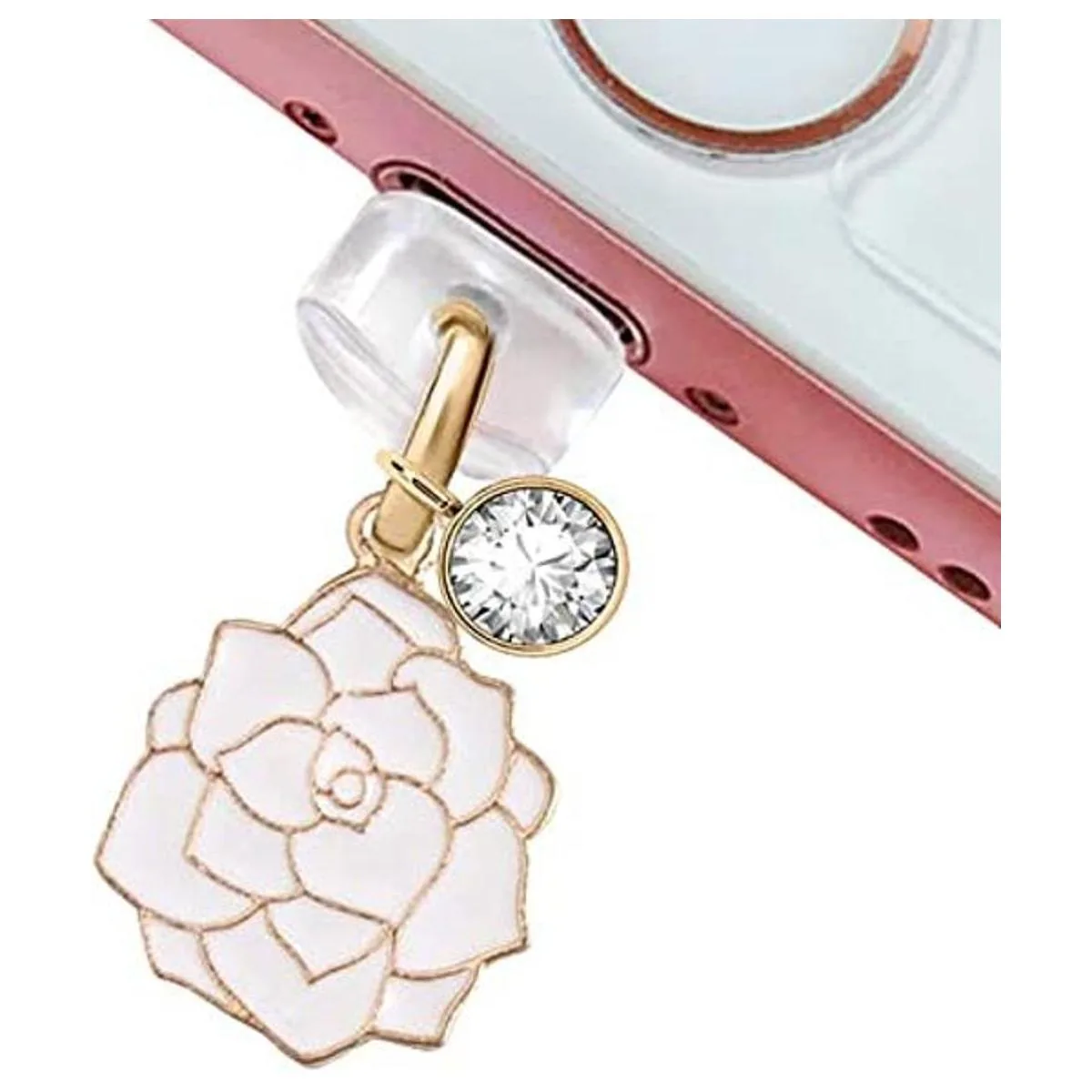 ELISE FONDA CP209 Puerto de carga USB antipolvo enchufe colgante rosa para iPhone 11XS MAXXRX8 Plus76S8SE iPad iPod blanco, approx. 2 cm H x 2.3 cm W x 0.2 cm D, Zinc, estrás
