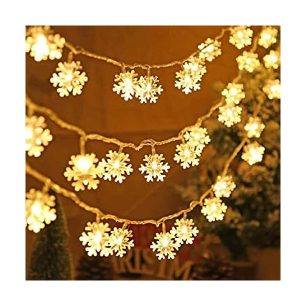 Elishine Cadena de luces de copo de nieve de 19 pies40 LED para exteriores, impermeable, decoración de casa, luces decorativas de copo de nieve para Navidad, fiesta blanco cálido