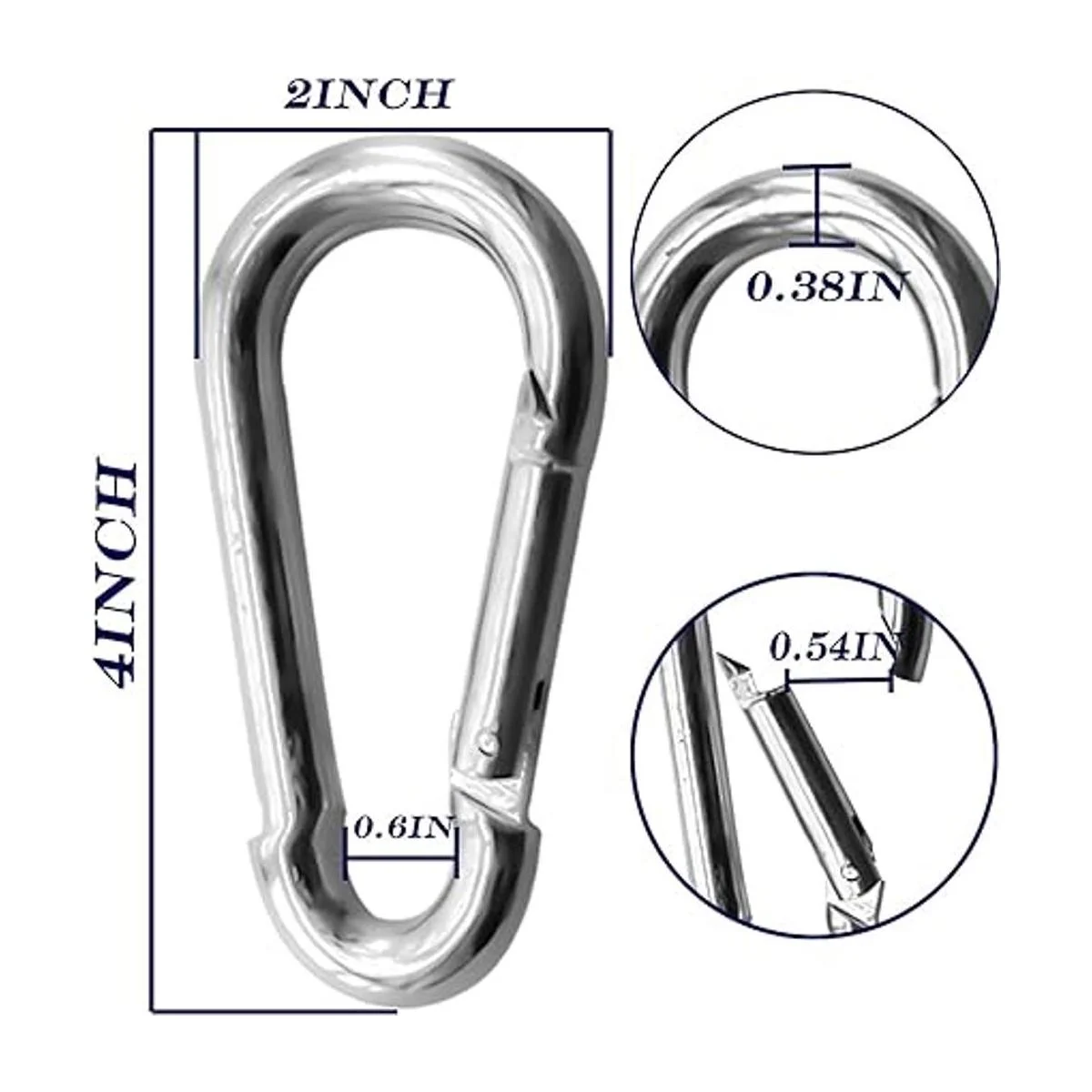 Paquete de 30 ganchos de resorte de 3.9 in: el paquete incluye 30 mosquetones M10 fuertes, lo que permite una conexión y desconexión más rápidas, ampliamente utilizado para conectores de llavero, columpio, hamaca, equipo de interior y exterior