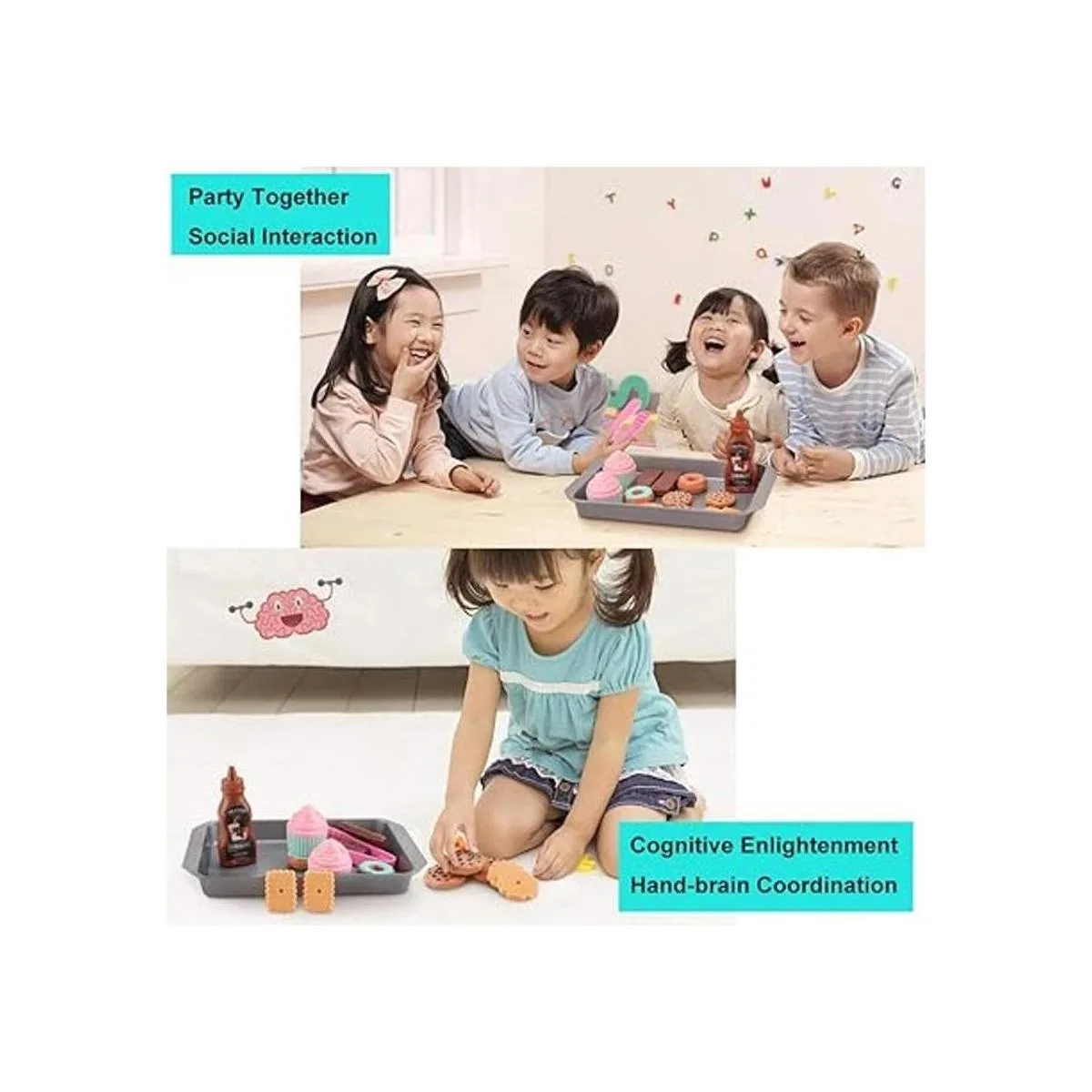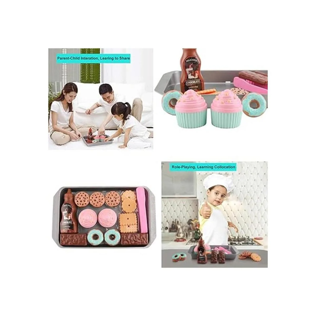 ELitao Juego de alimentos de juego para galletas, comida de juego para cocina de niños, accesorios de comida de juguete, alimentos de juguete con juego para hornear, galletas y cupcakes, comida de plástico para juegos de simulación, regalos de cumpleaños para niños pequeños