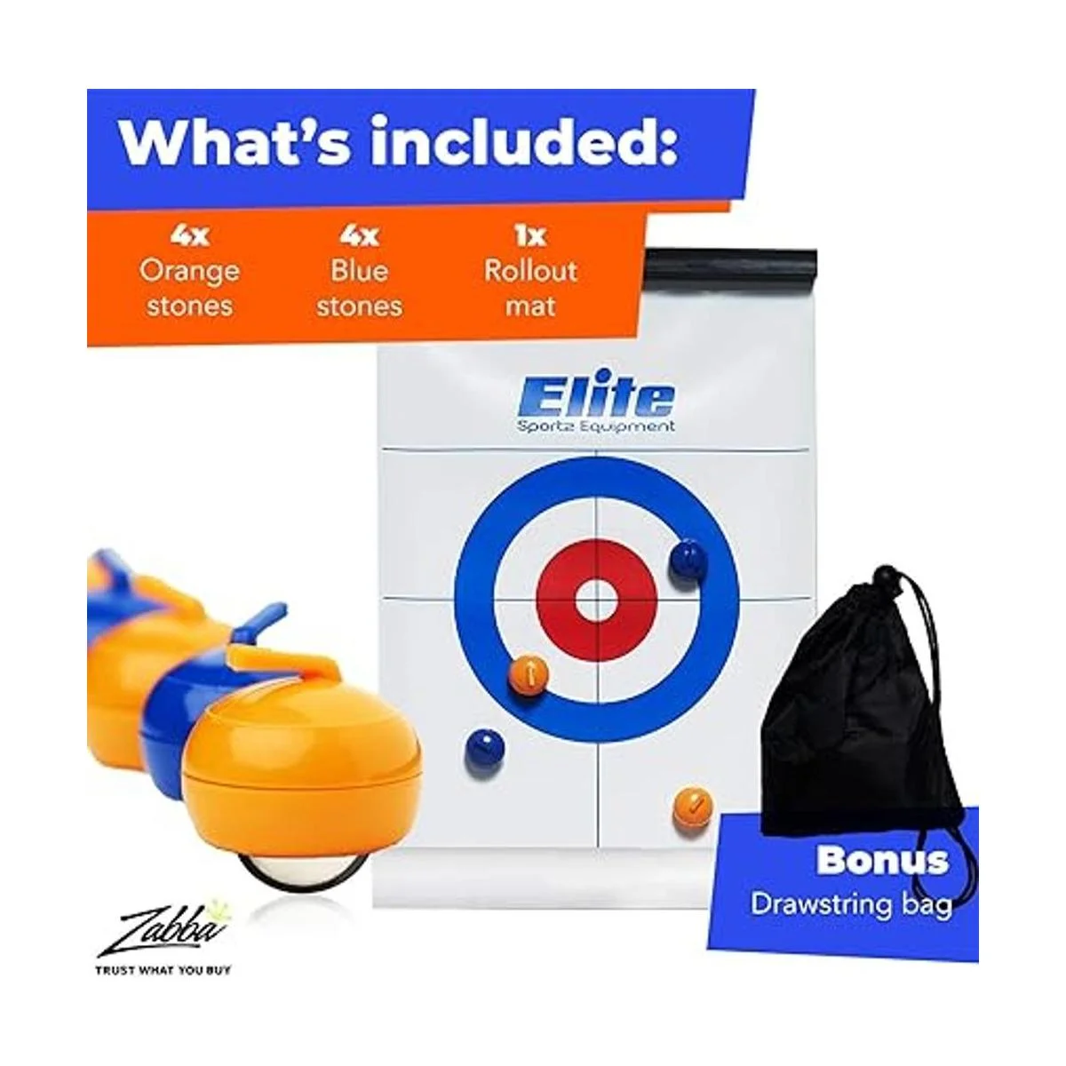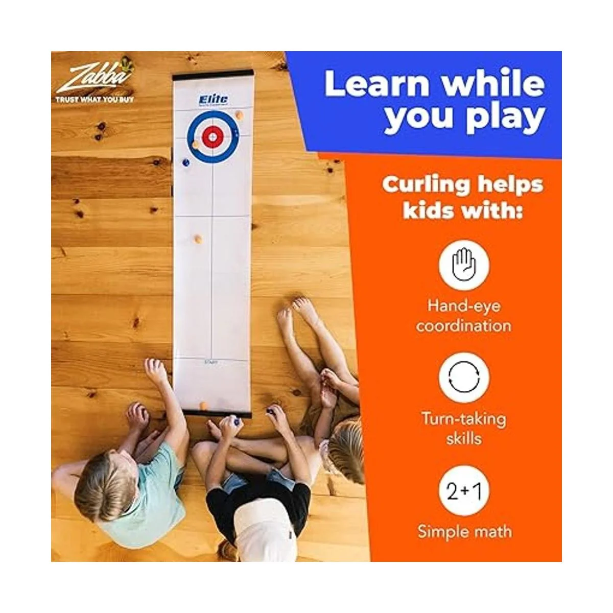 Elite Sportz Equipment Juego de curling Juegos de mesa para adultos, niños y familias, alfombrilla de 4 pies x 1 pie para diversión en interiores con bolsa de viaje adicional, a partir de 6 años