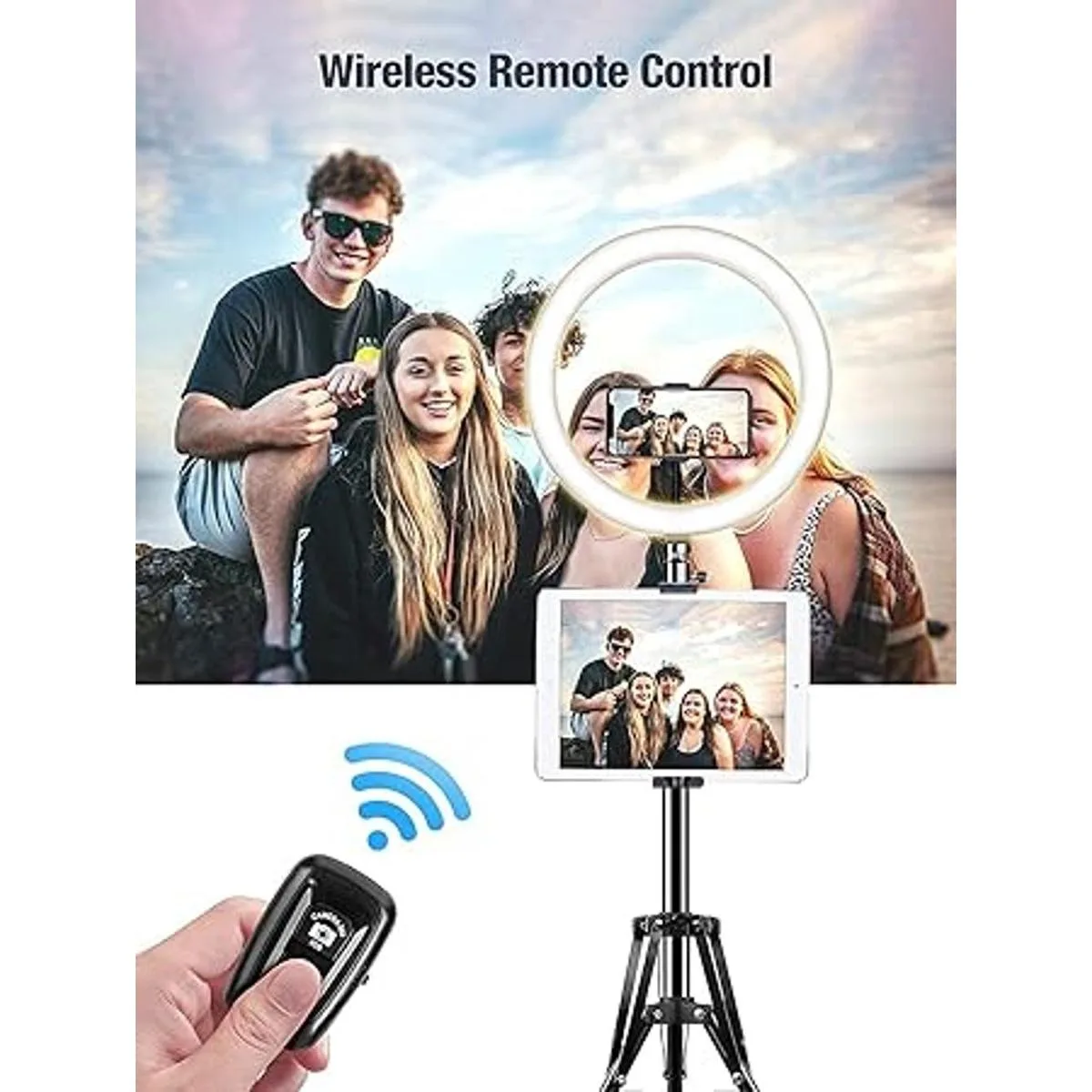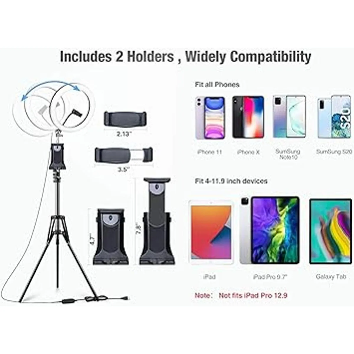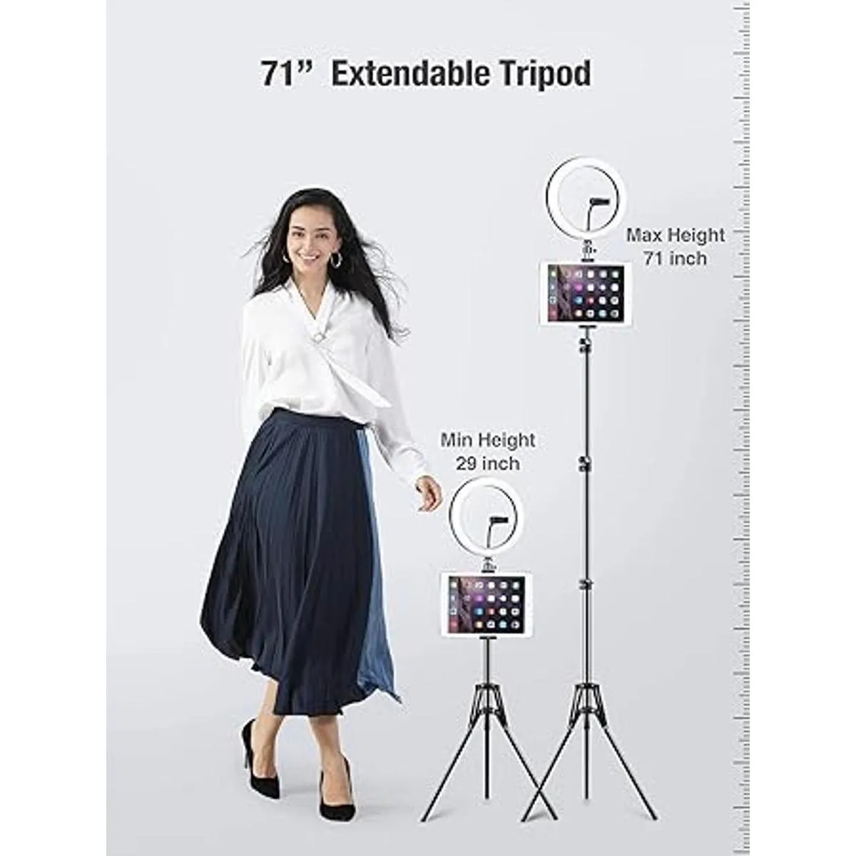 Elitehood Anillo de luz de 12 pulgadas con soporte de trípode 72 pulgadas de alto y soporte para iPadteléfono, luces LED regulables para selfie circular para grabación de video, conferencias, maquillaje, laptop, computadora, cámara web, YouTube