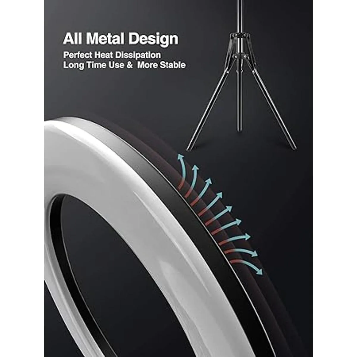 Anillo de luz mejorado: carcasa de aleación de aluminio ligera y 168 piezas LED SMD se utilizan para construir la luz de anillo grande de 12 pulgadas. La potencia máxima de trabajo del anillo de luz es de hasta 15 W con 3 modos de color: luz diurna, cálida o blanca, y 10 niveles de intensidad de brillo. Estas luces LED proporcionan una propagación de luz de calidad profesional, sin sombras y limpia para maquillaje, grabación de video, fotografía, cámara web, video de YouTube, transmisión de vidas, selfies y mucho más
