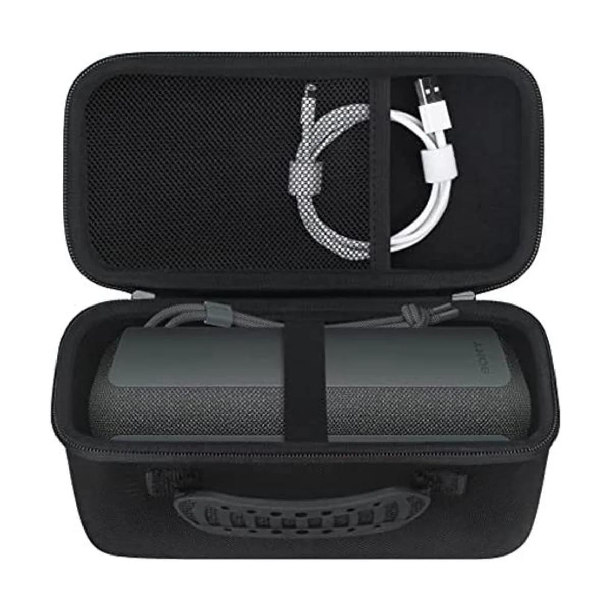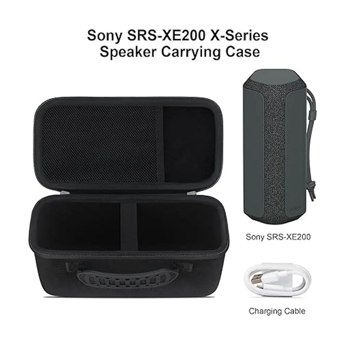 Elonbo Funda de transporte para Sony SRSXE200 XSeries Altavoz Bluetooth inalámbrico ultra portátil, bolsillo de malla adicional para cable de carga, color negro
