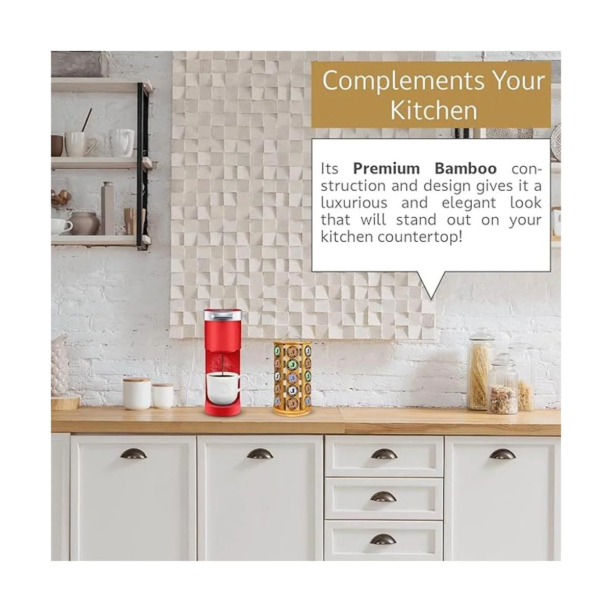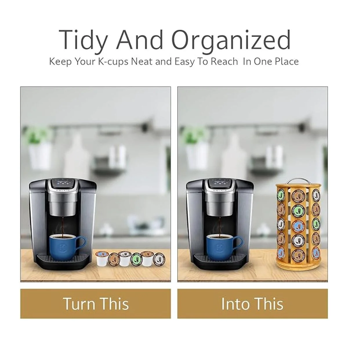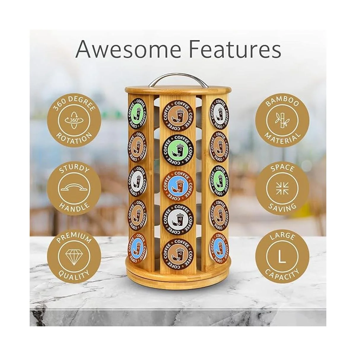 Eltow Carrusel de bambú para cápsulas de café, compatible con KCups, paquete de 35 cápsulas, plataforma Lazy Suzan gira 360 grados, diseño moderno para el hogar u oficina organizador de encimera de cocina