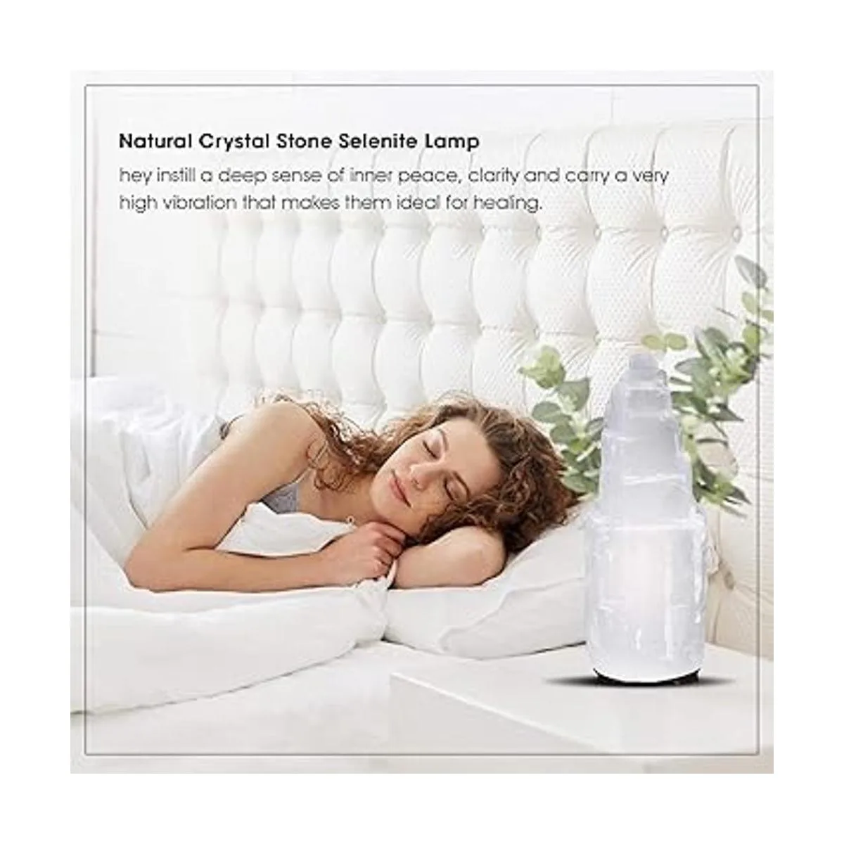 Las ondas de luz de la lámpara selenita hacen que la mente del pueblo esté sobria, ayuda a estabilizar y equilibrar el cuerpo emocional, la selenita es una piedra calma que infunde paz profunda y es excelente para la meditación o el trabajo espiritual.