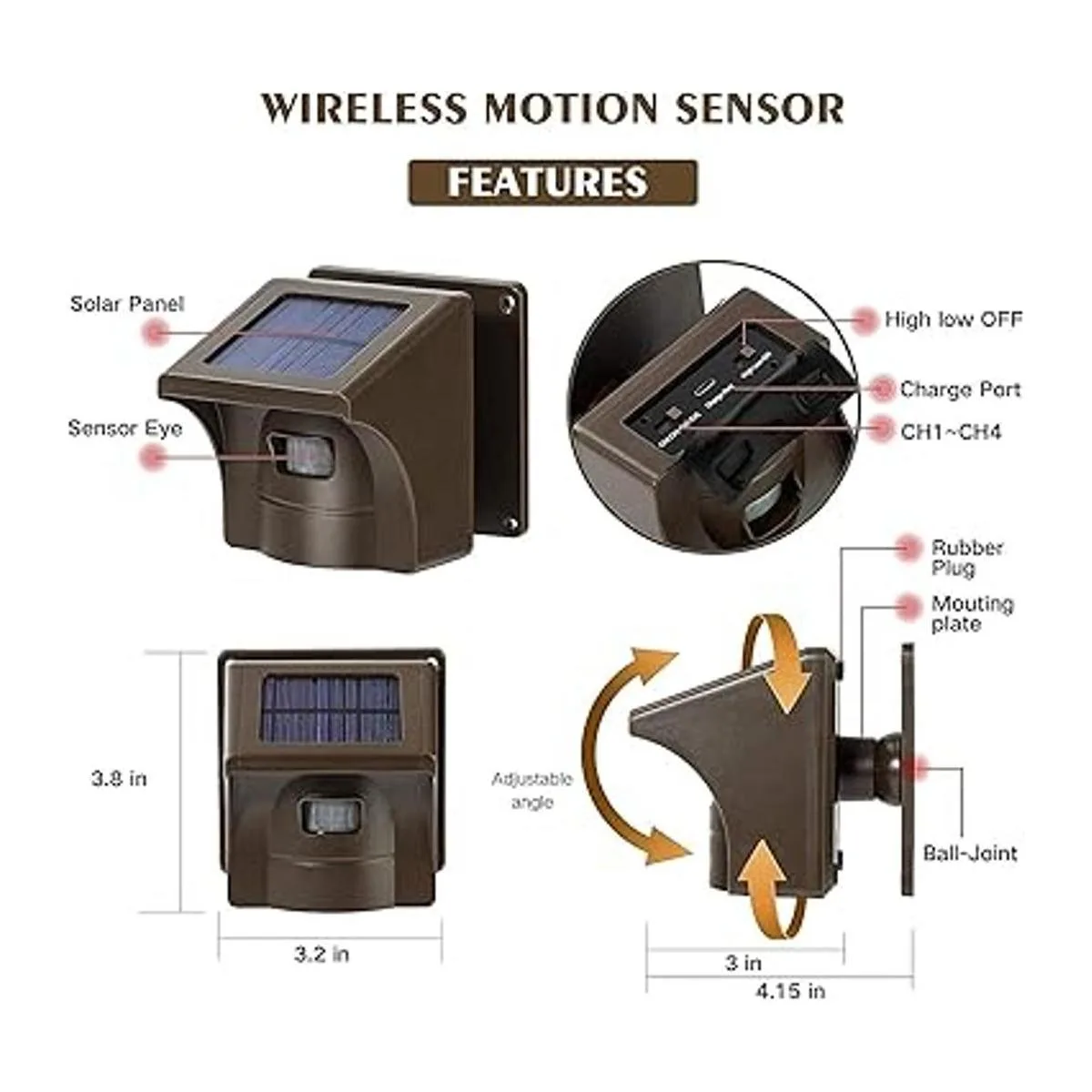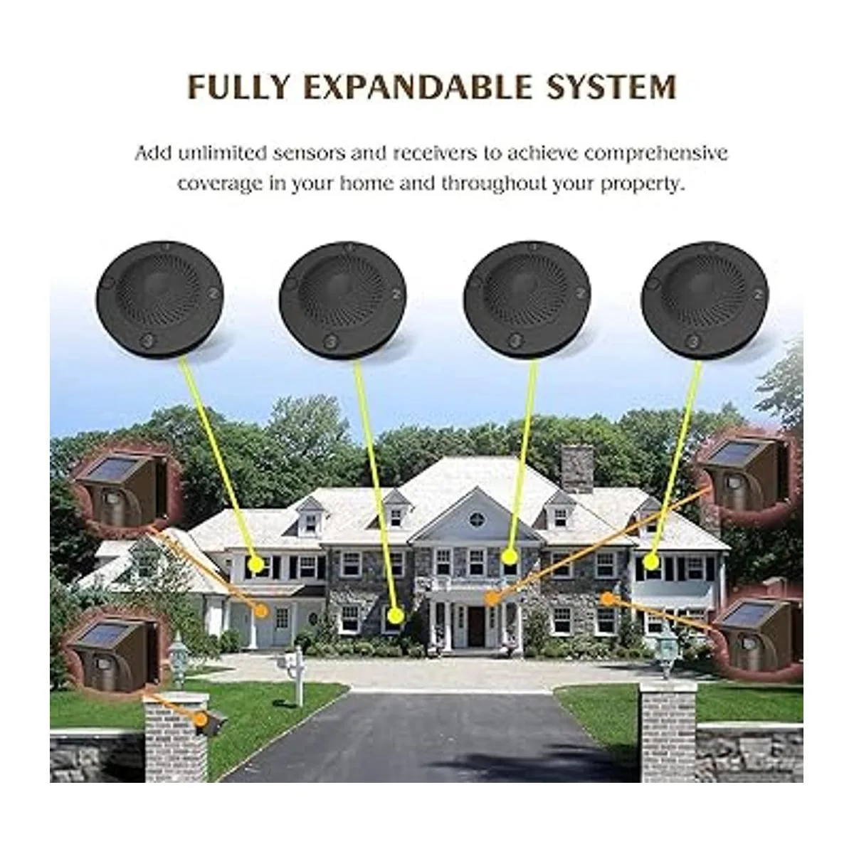 Fácil de instalar: la guía de inicio rápido te hace operar en cuestión de minutos. Puede ampliarse hasta 4 sensores y receptores ilimitados para una cobertura completa de tu perímetro. La alarma inalámbrica de entrada detecta el movimiento de humanos, coches y animales grandes. Hay 4 campanillas divertidas y únicas para elegir. Combina diferentes campanillas con diferentes sensores alrededor de tu propiedad para diferenciar dónde se detecta movimiento inalámbrico de alarma de entrada.