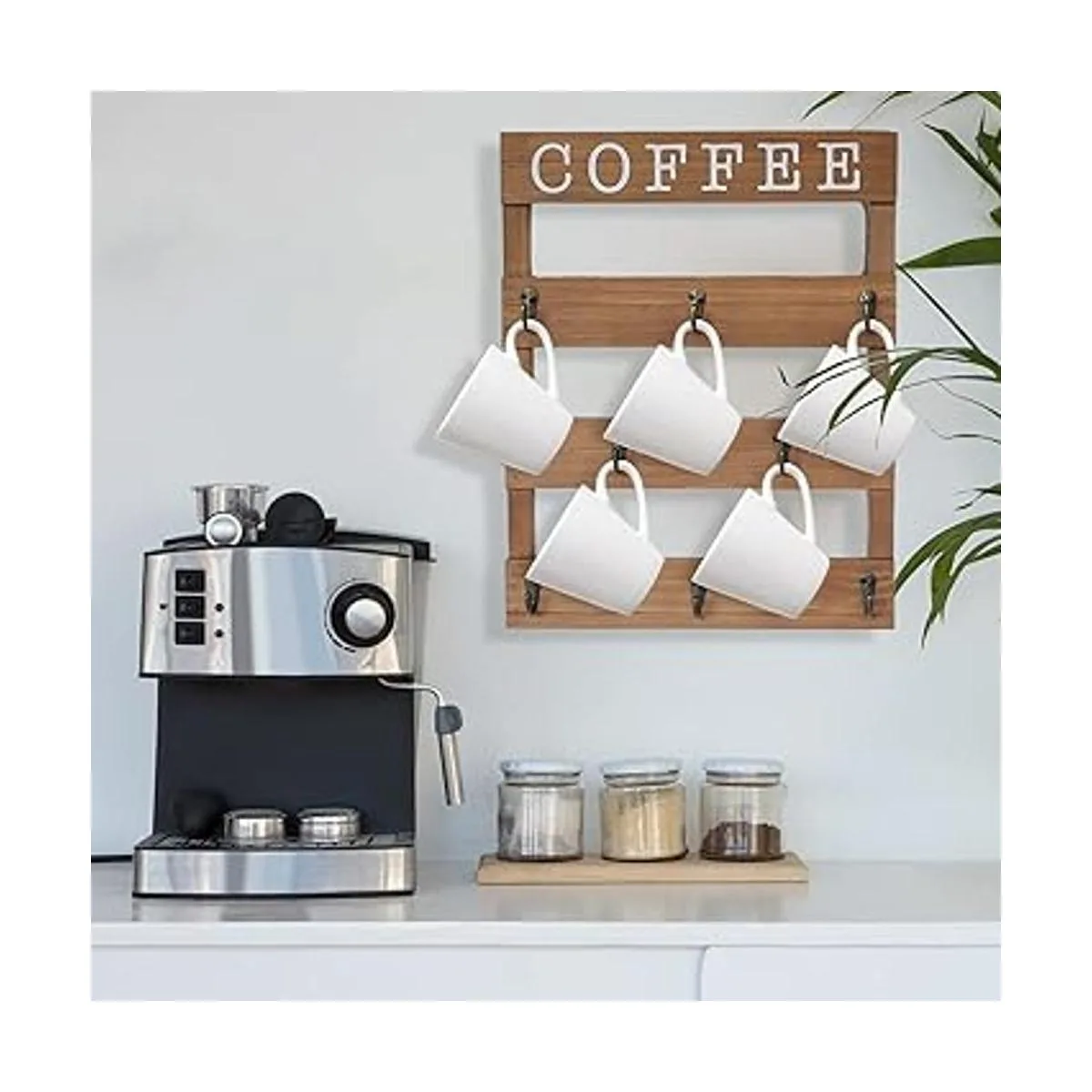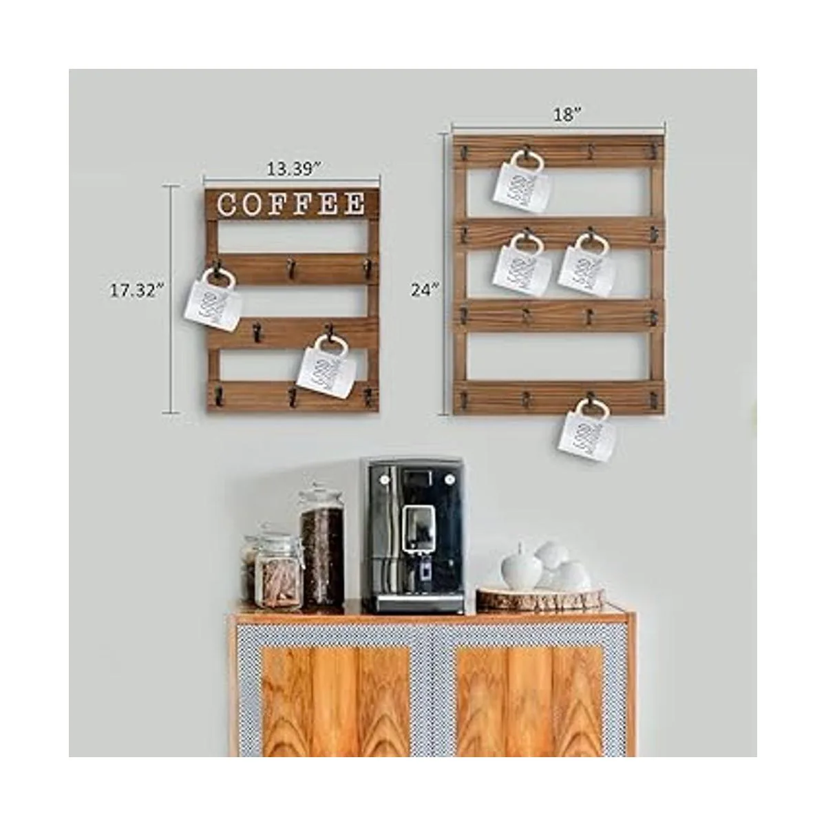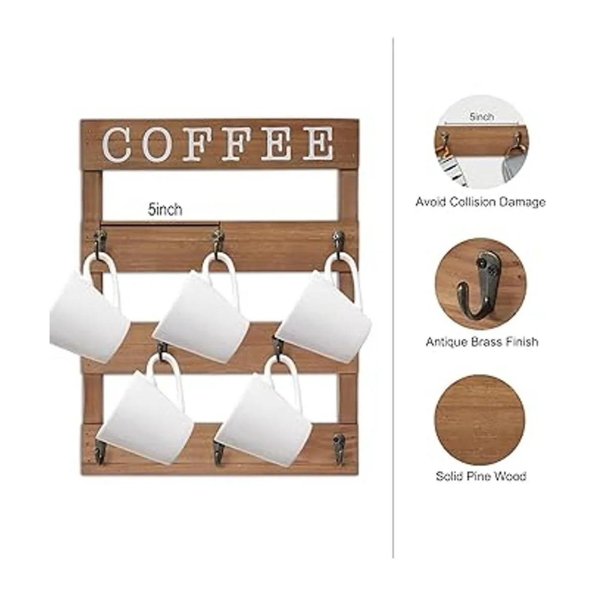 Resistente: hecho de madera de pino maciza para garantizar durabilidad y resistencia a las grietas. Todos los ganchos están hechos de metal de alta calidad para mantener tus tazas de café en su lugar de forma segura.