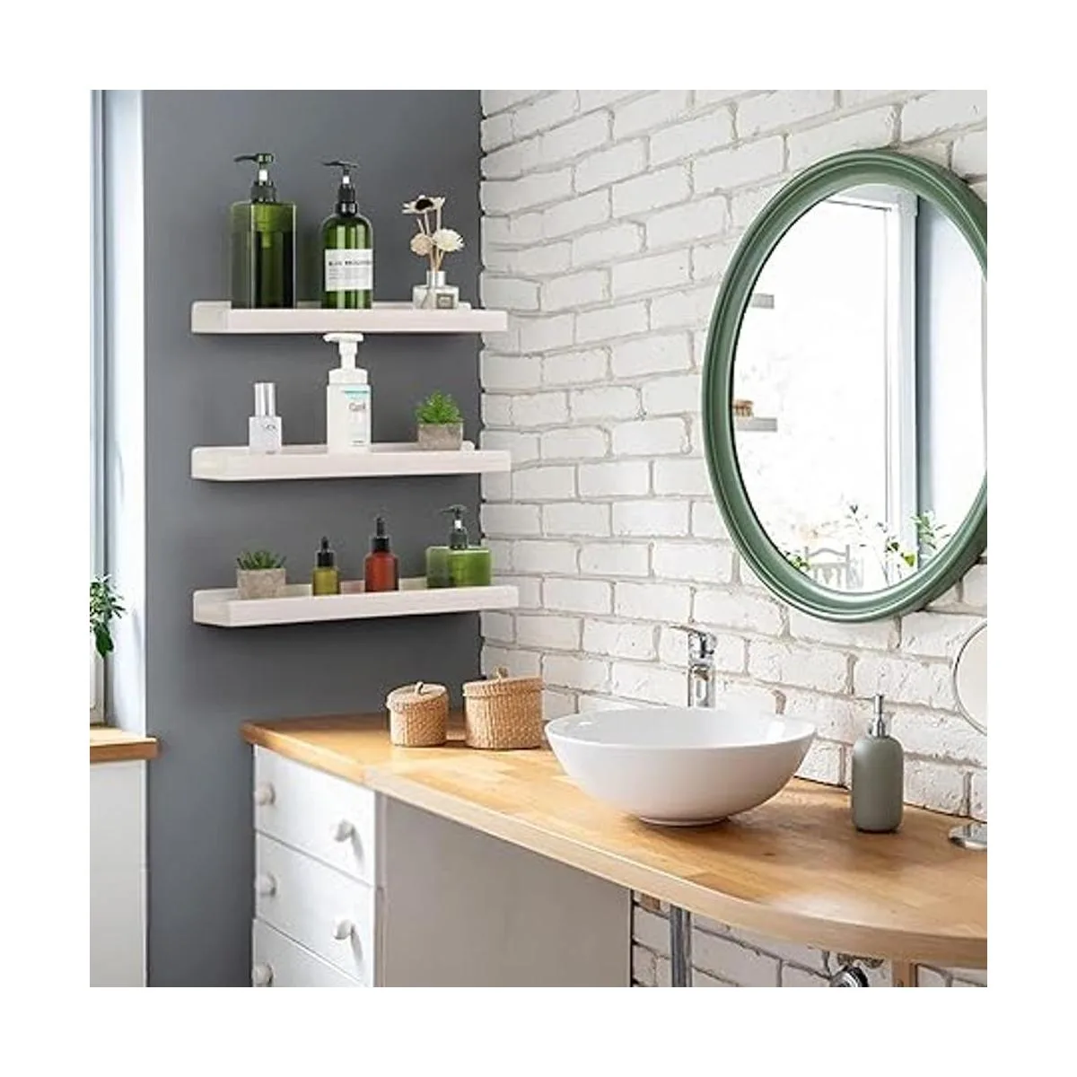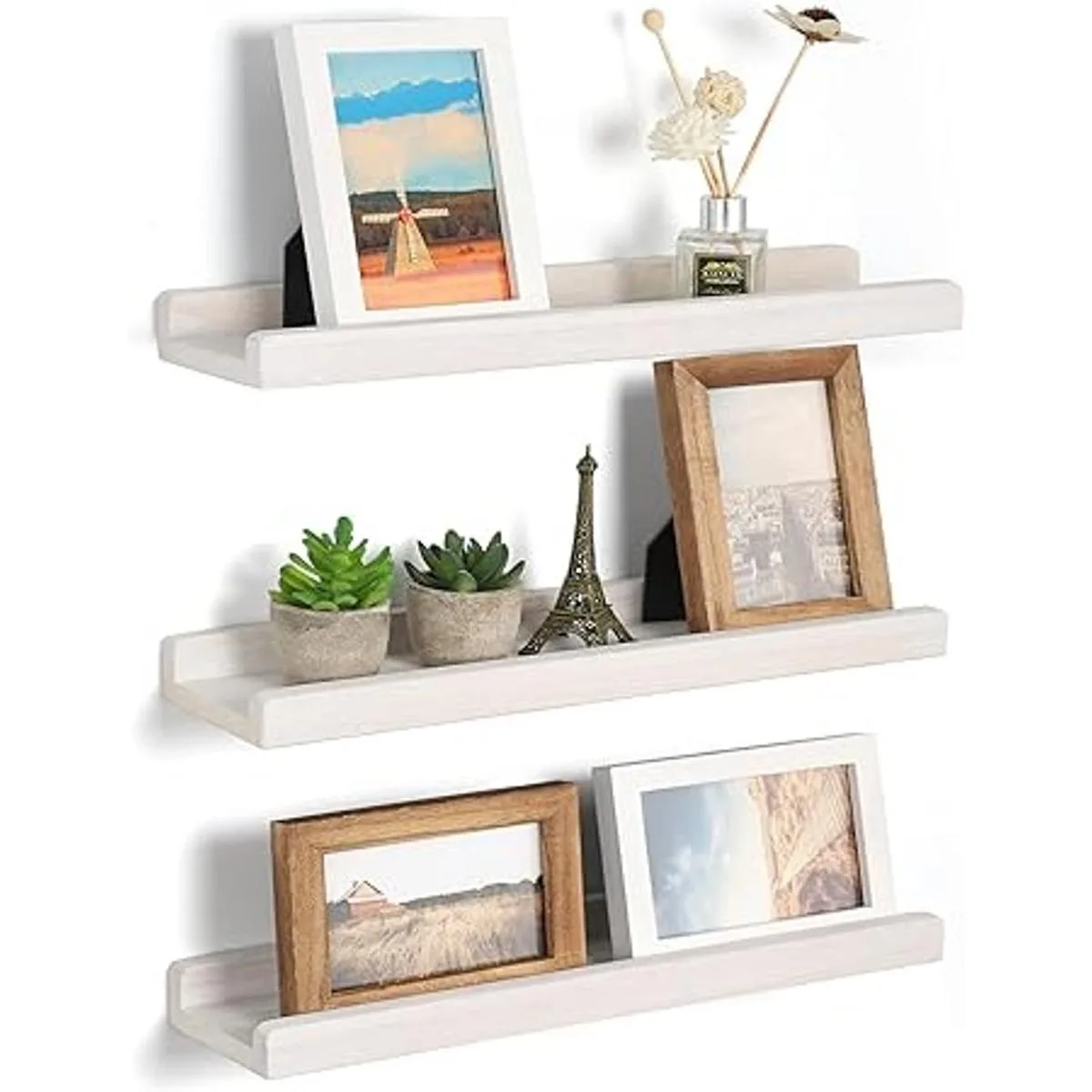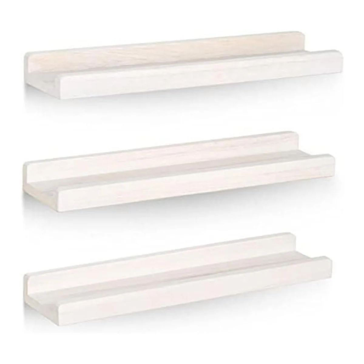 Emfogo Estantería flotante de madera rústica juego de 3 estantes de pared para almacenamiento y exhibición de 16.9 pulgadas, color blanco vintage