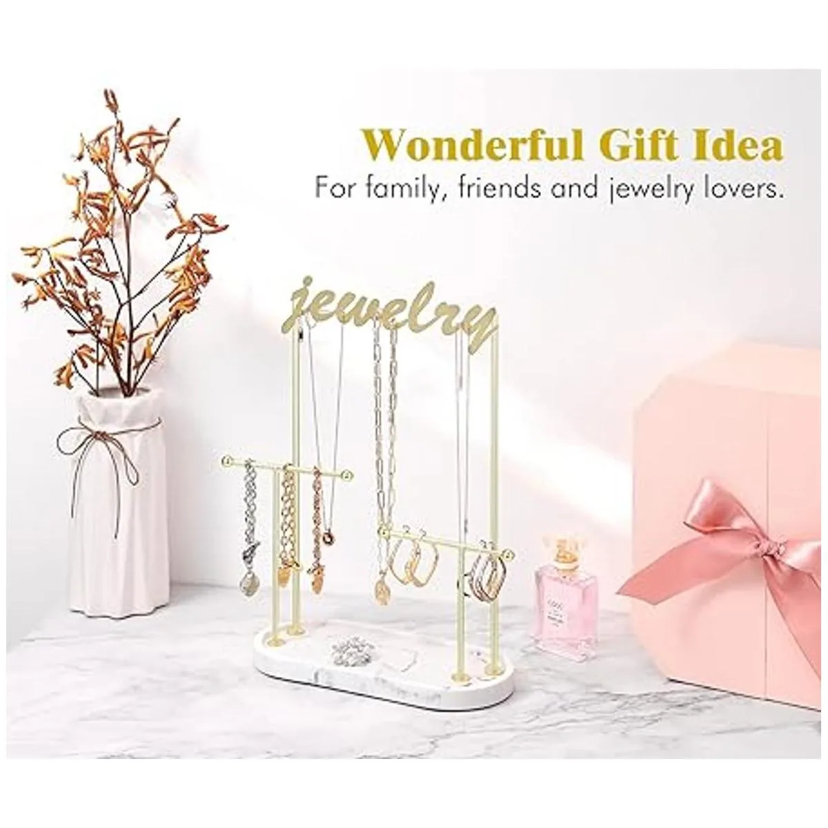 Elección de regalo genial El soporte organizador de joyas de estilo elegante será un regalo perfecto para tu esposa, novia, hija, madre y amigas en muchos tipos de festivales, como el día de San Valentín, el día de la madre, Acción de Gracias, cumpleaños, Navidad, etc.