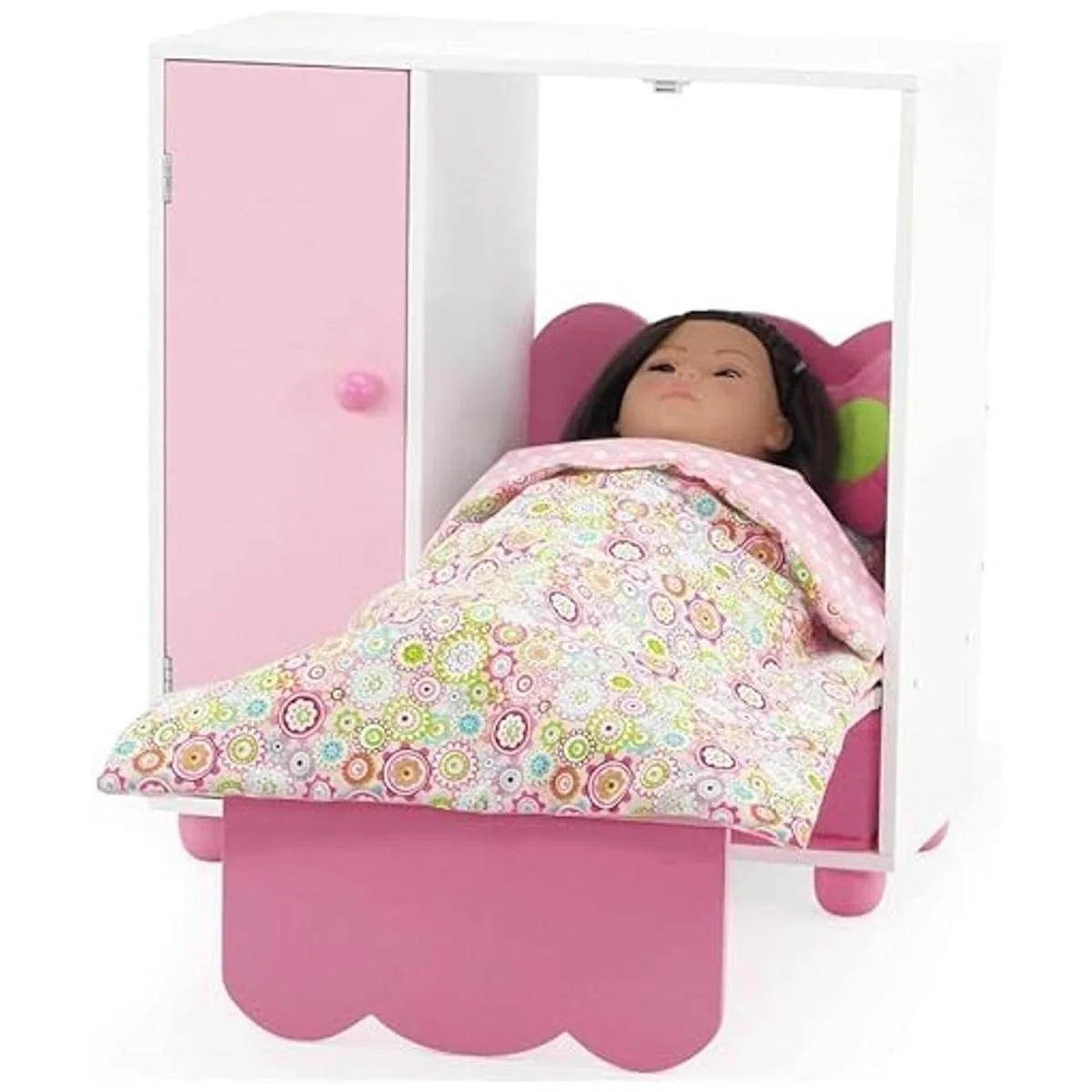 de las características: gran pieza de mobiliario de muñeca para tu muñeca de 18 pulgadas, incluyendo cama de muñecas, armario de muñecas y almacenamiento de ropa de muñeca, todo en uno