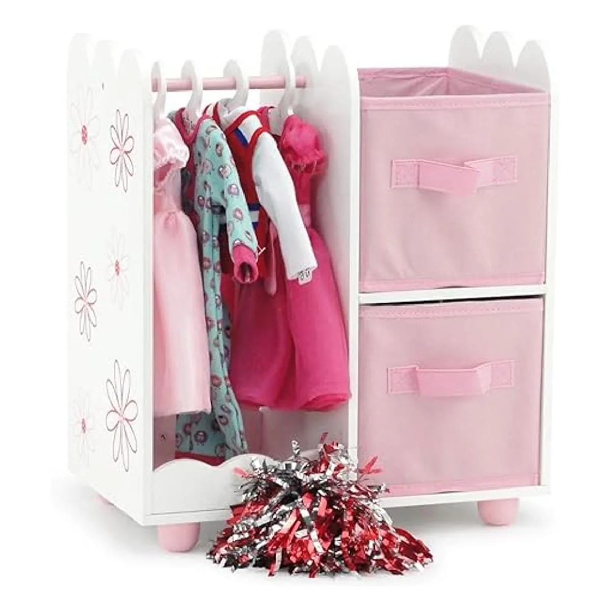de las características: barra de ropa para colgar ropa de muñeca más contenedores de almacenamiento de tela para zapatos de muñecas, bolsos, accesorios y mucho más.