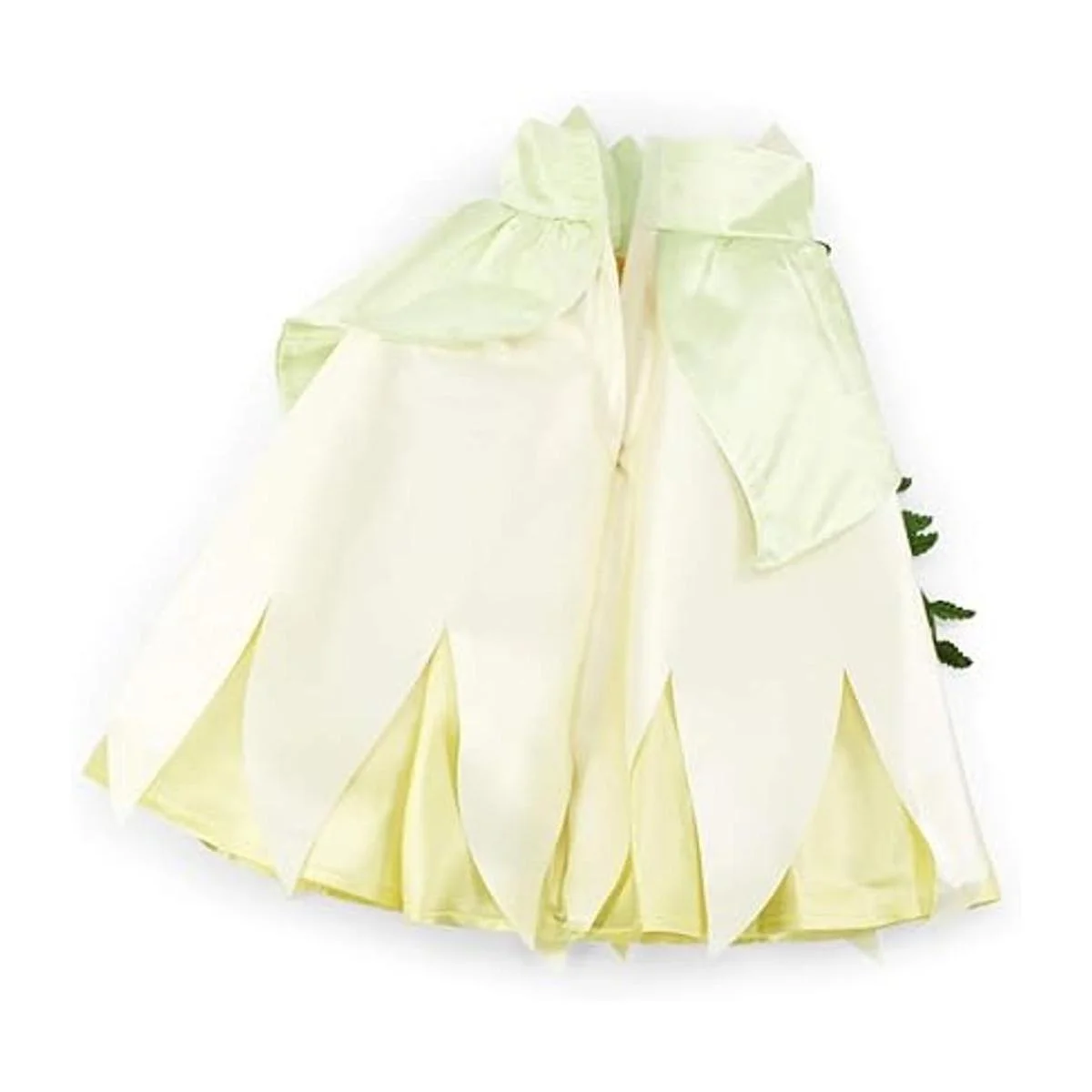 Hermoso vestido de baile inspirado en Tiana de 18 pulgadas con detalle de cintura de flores y una falda completa multicapa.
