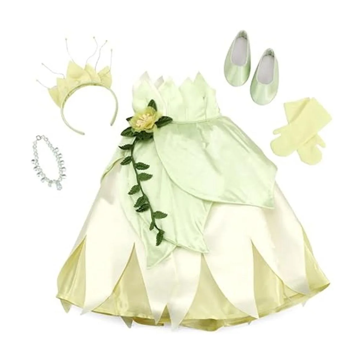 El juego también incluye una corona, guantes y zapatos a juego. Un collar brillante completa el look