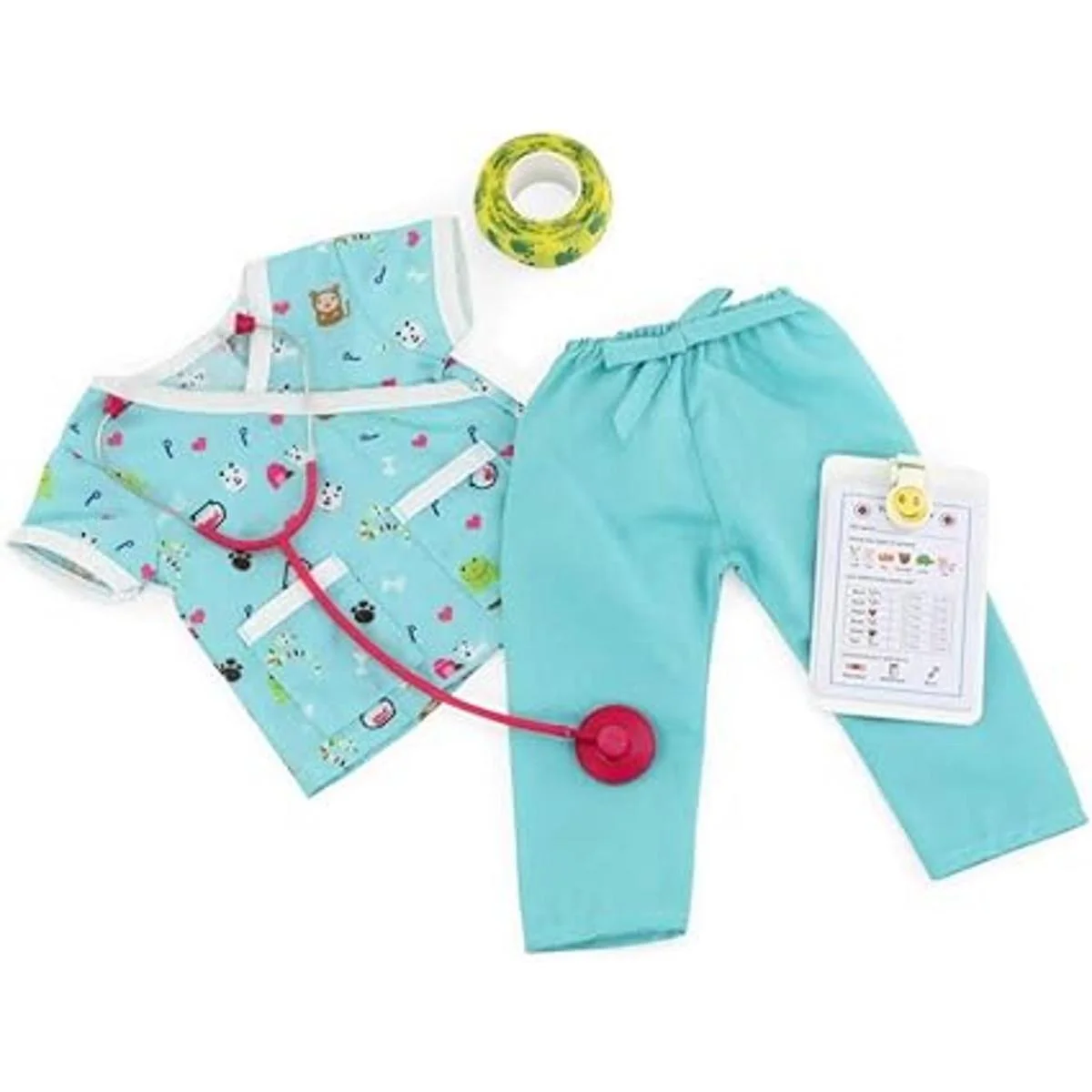 Emily Rose Ropa de muñeca de 18 pulgadas, 6 piezas para mascotas, muñeca médica, atuendo veterinario con accesorios, ropa para muñecas estadounidenses de 18 pulgadas, zapatos no incluidos