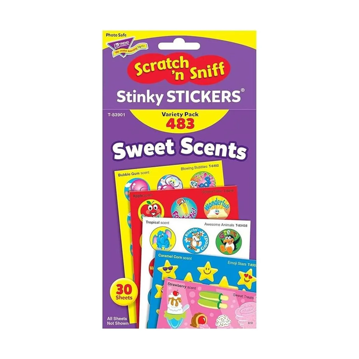 Empresas de tendencia aromas dulces, calcomanías aromáticas para raspar y oler, divertidas para recompensas, incentivos, manualidades y como coleccionables, 108 diseños, 30 hojas incluidas, para edades de 3 años en adelante