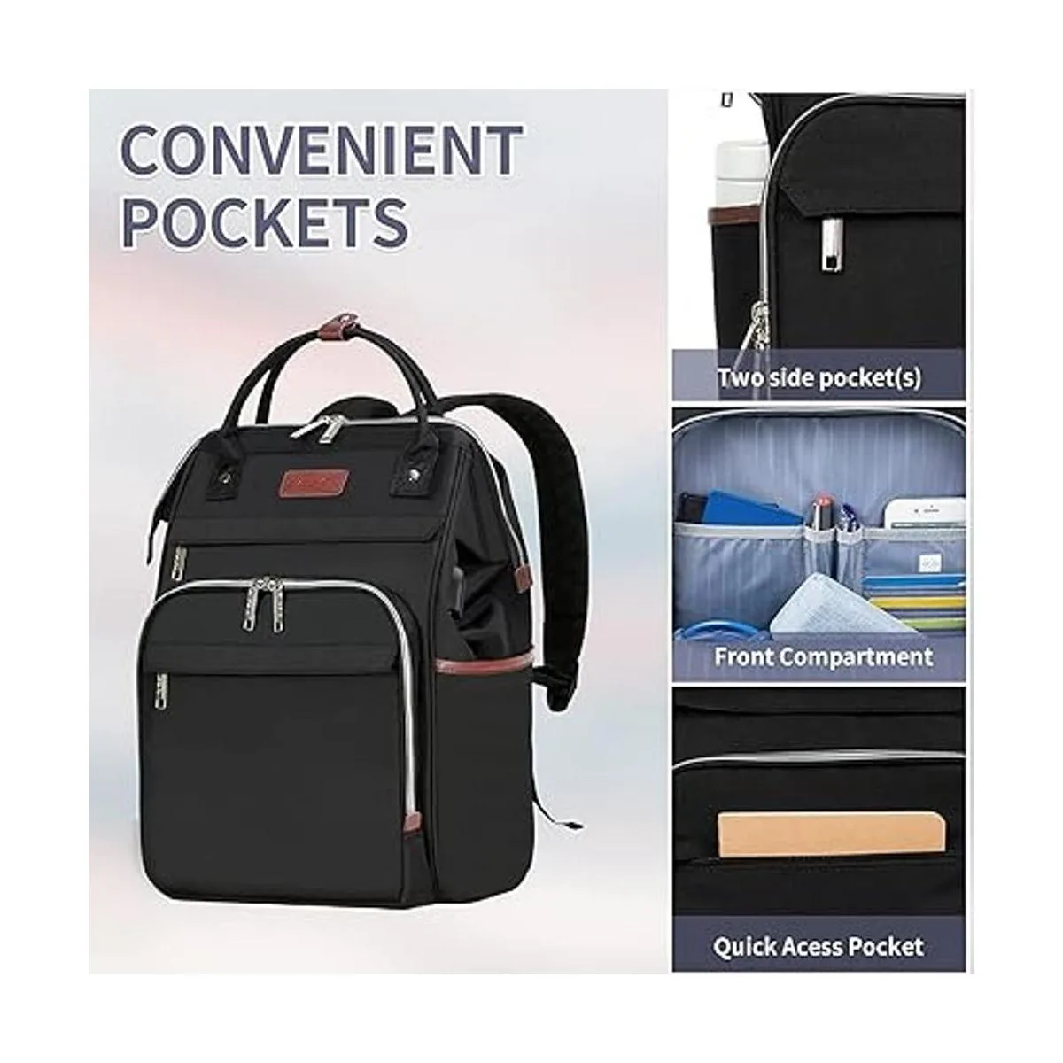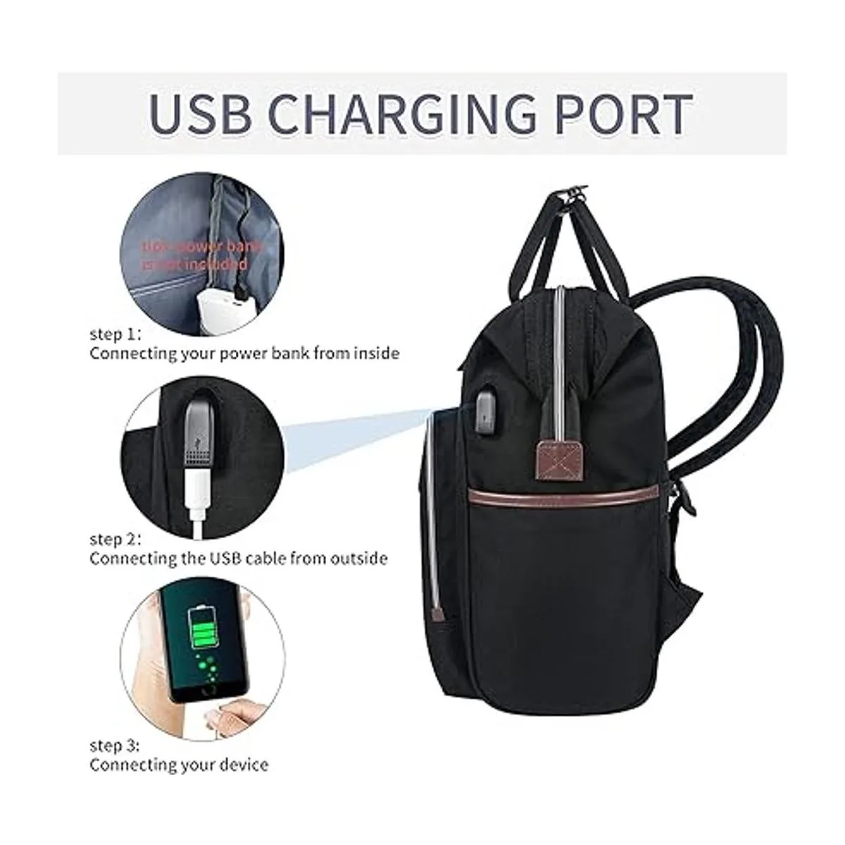 Puerto de carga USB: la mochila multifuncional cuenta con puerto USB exterior para carga sobre la marcha, y también se proporciona el cable correspondiente. Batería externa no incluida.