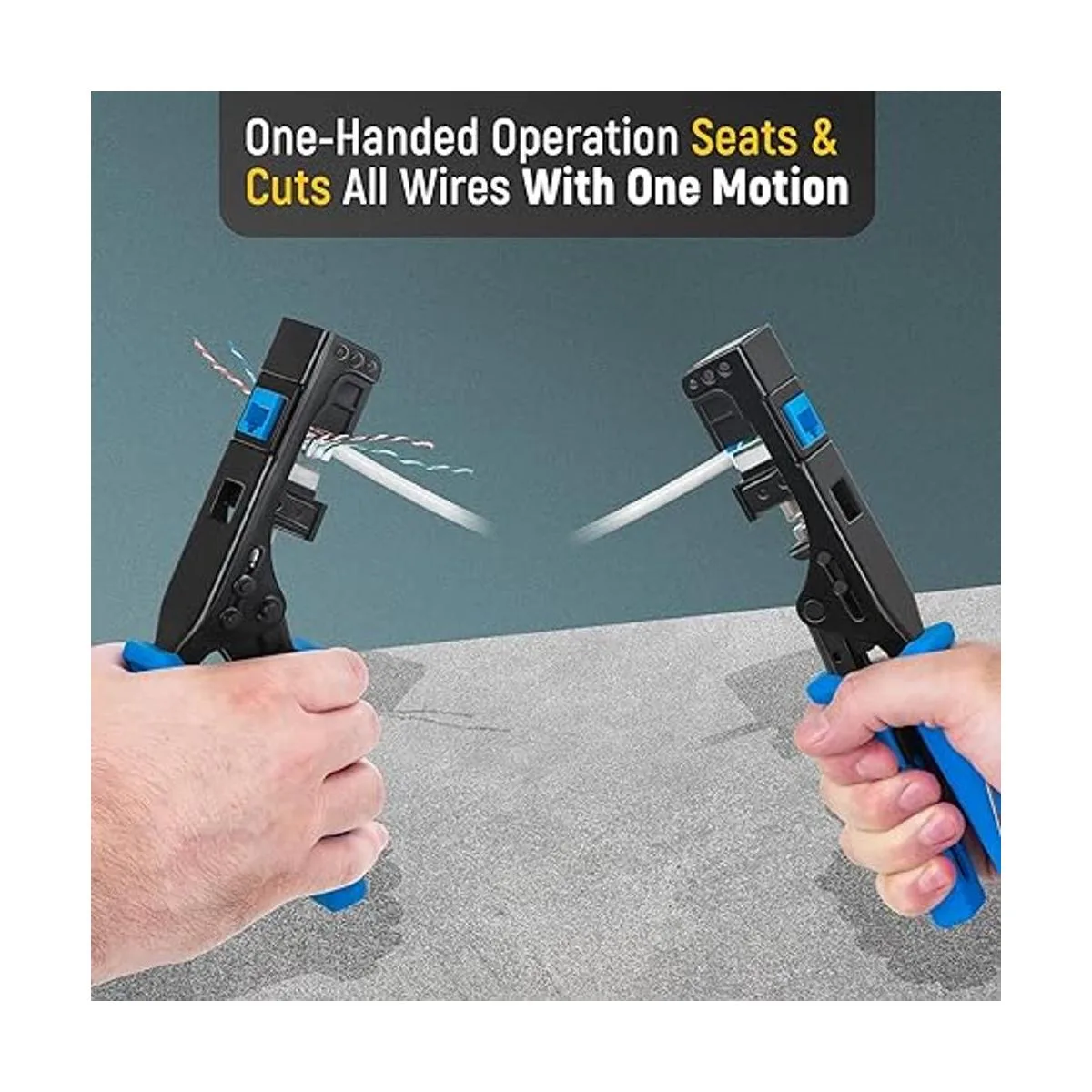 Funcionamiento rápido con un solo movimiento: solo necesitas una mano para utilizar esta práctica crimpadora RJ45 A diferencia de las herramientas de perforación estándar, nuestra herramienta easyJack te permite cortar 8 cables en un movimiento suave y fluido.
