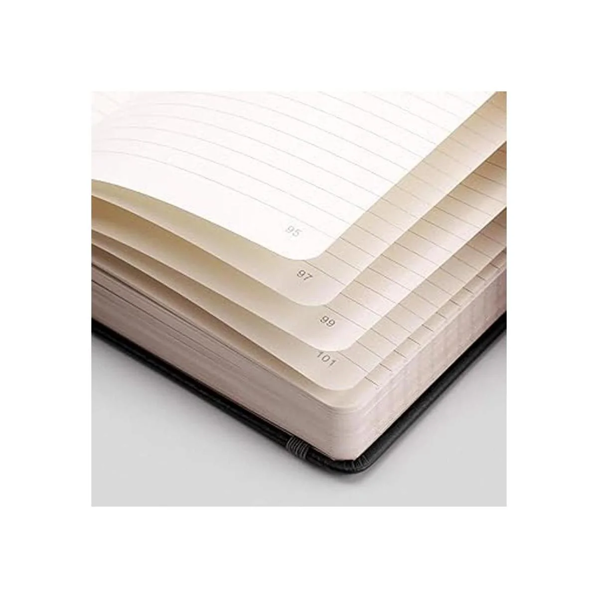 EMSHOI Cuaderno rayado para la universidad, 256 páginas numeradas tamaño A5, papel grueso de 3.54 ozy, 16 páginas perforadas, tapa dura de piel sintética, bolsillo interior, 5.75 x 8.38, color negro