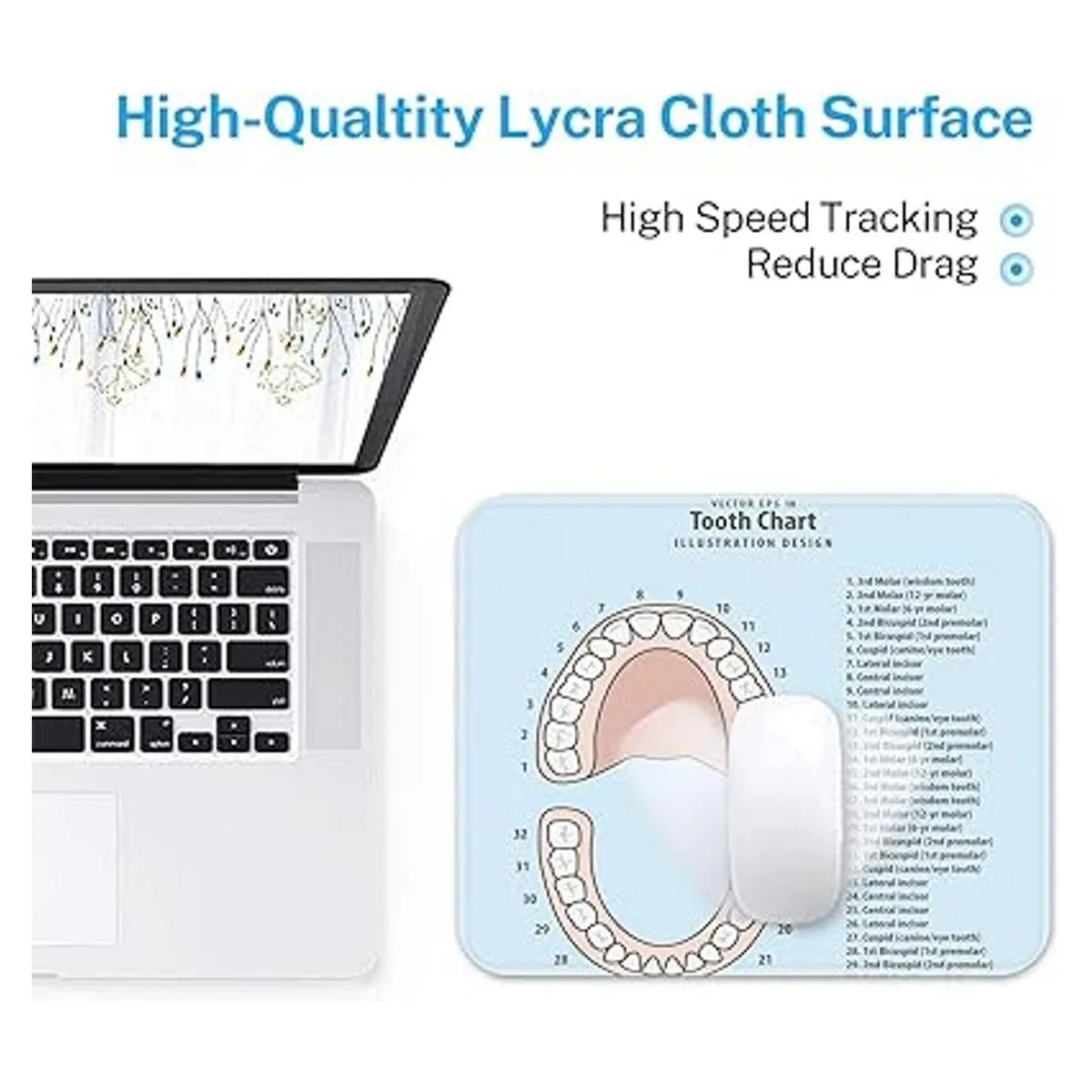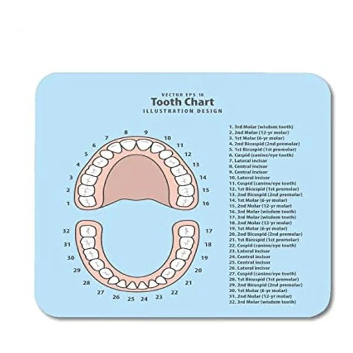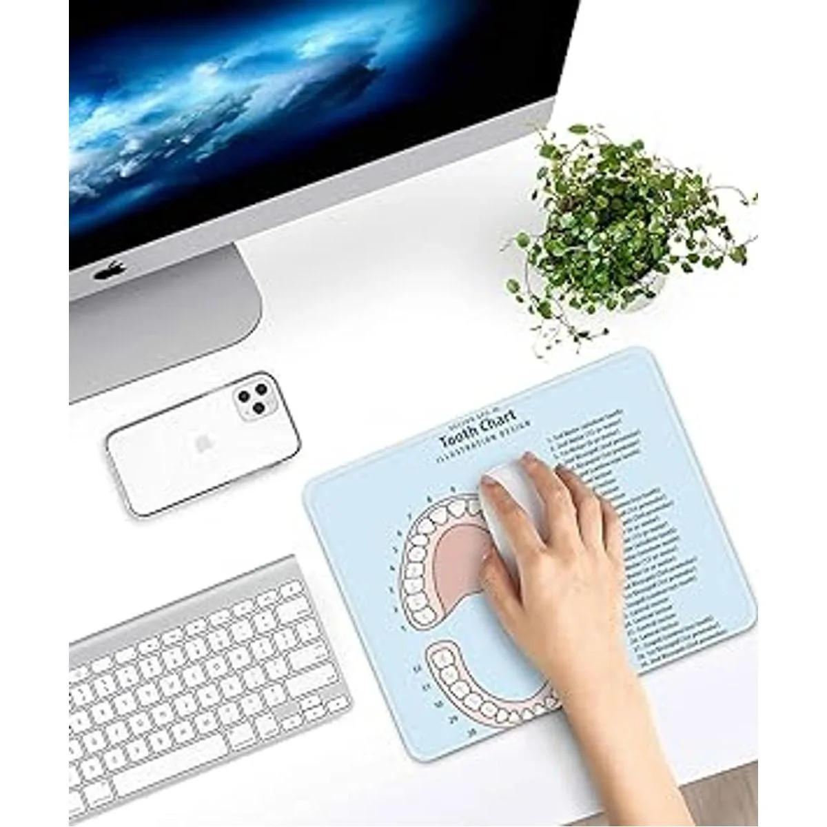 Emvency Alfombrilla de mouse rosa, diagrama de dientes educacional, infografía con números de la anatomía humana dental en azul, alfombrilla de mouse de 9.5 x 7.9 pulgadas para computadora portátil, accesorios de computadora de escritorio, mini suministros de oficina