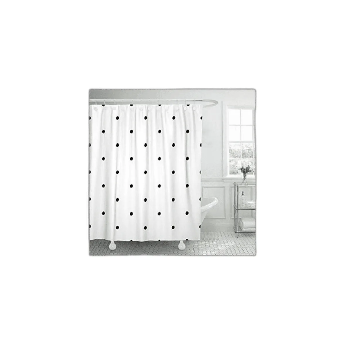 Emvency Cortina de ducha con diseño de lunares abstractos con diseño de lunares, color blanco y negro con burbujas monocromáticas para niños, tela de poliéster impermeable, 71.7 x 71.7 in, con ganchos