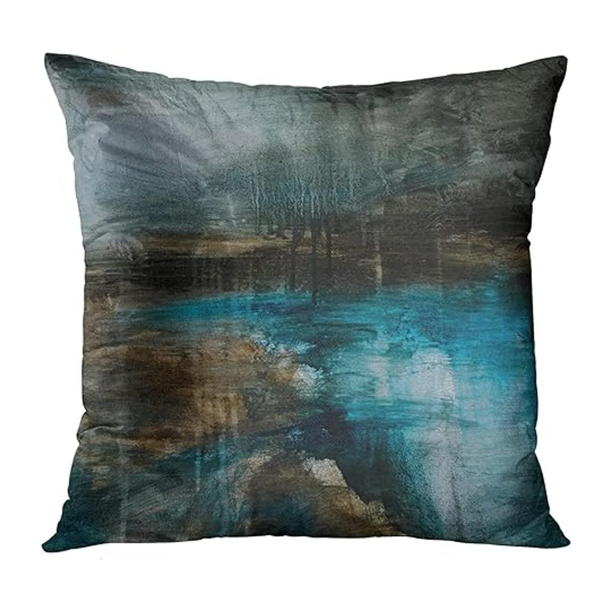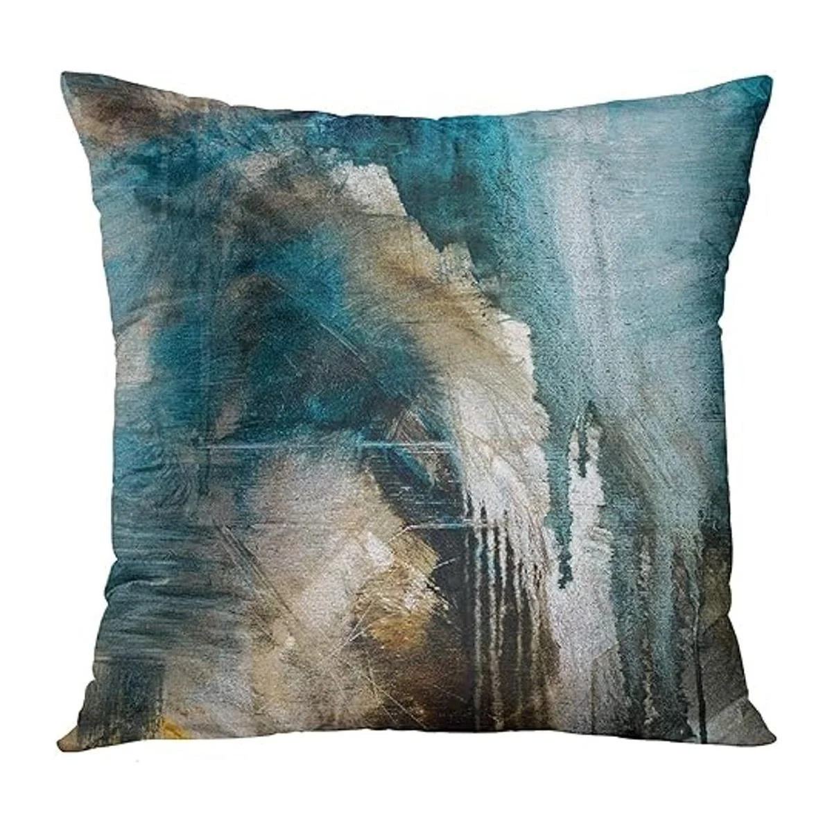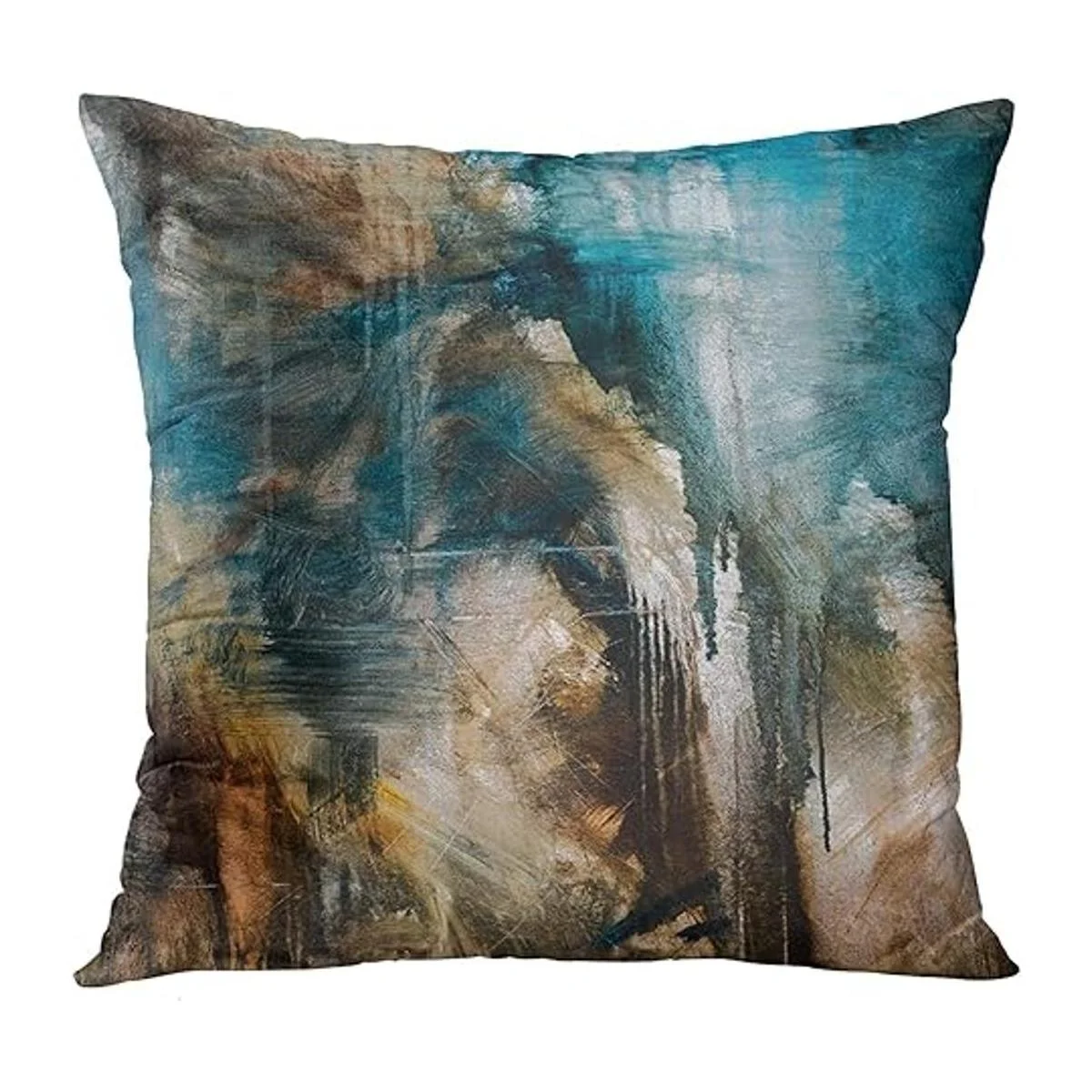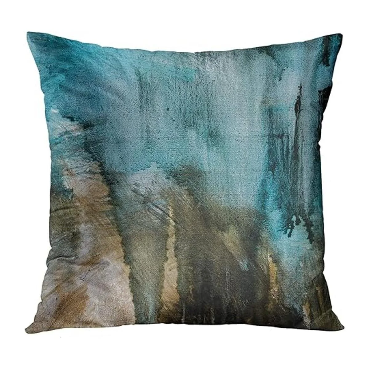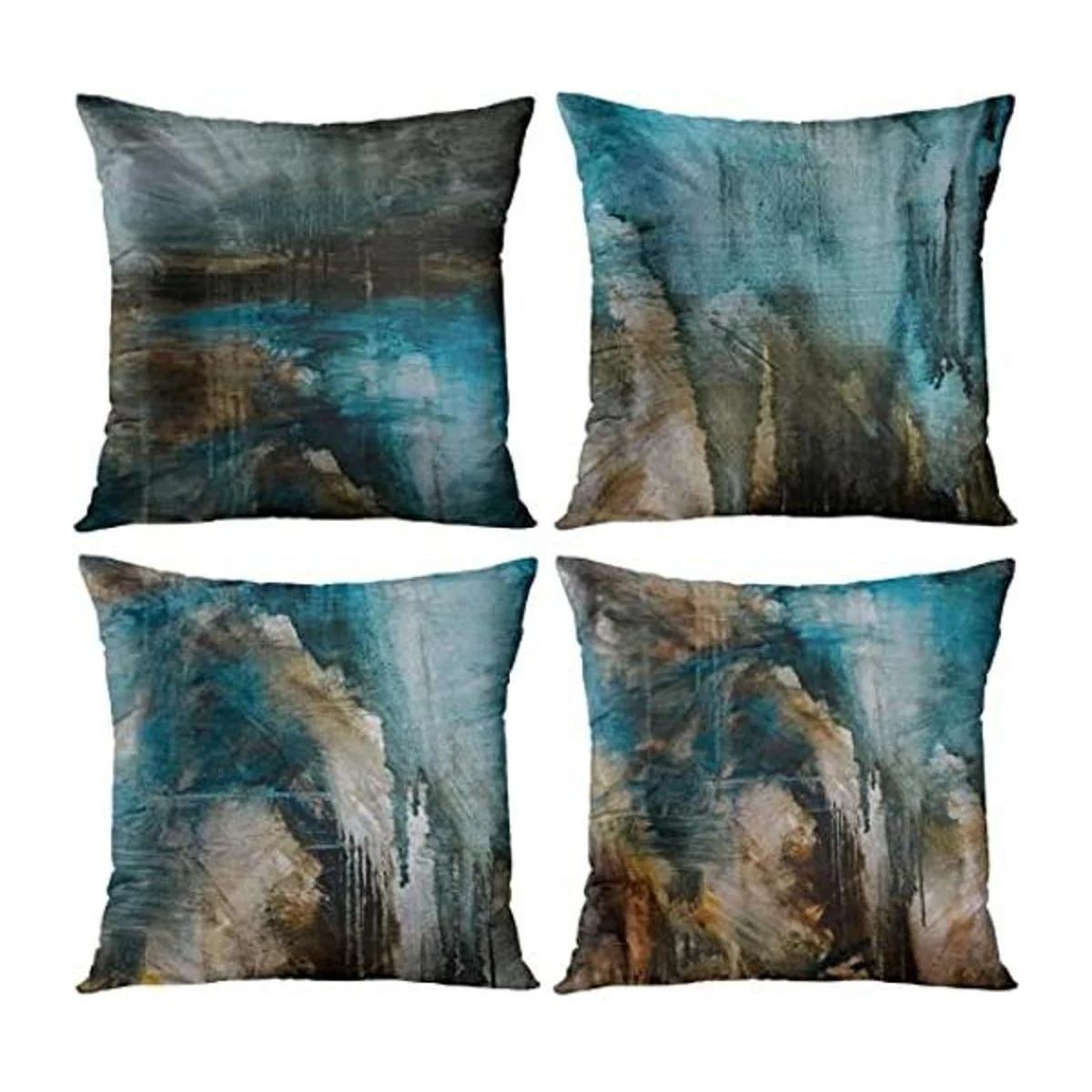 Emvency Juego de 4 fundas de almohada modernas, abstractas, desordenadas, color verde azulado, negro y marrón, pintura retro, fundas de almohada decorativas para decoración del hogar, cuadrado estándar, 18 x 18 pulgadas