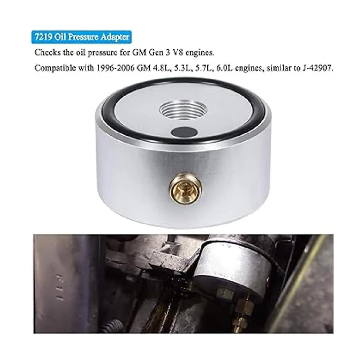 EN47971 Adaptador de manómetro de aceite y adaptador de presión de aceite 7219 Compatible con motores GM Generation 3, 4 y 5 V8, combinación perfecta