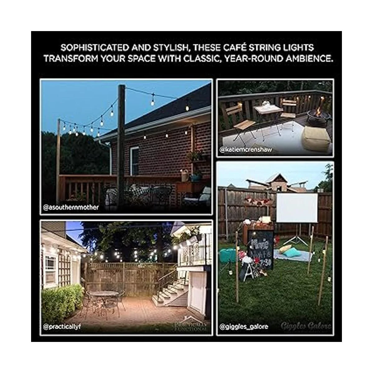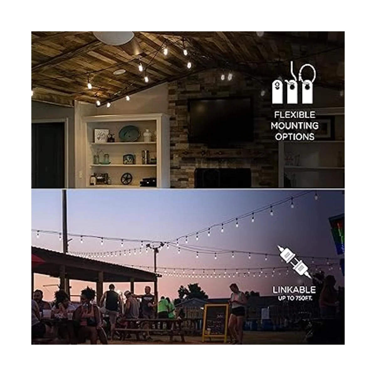 Enlazable hasta 750 pies y fácil de instalar con opciones de montaje flexibles. Cada tira de luces de café tiene conexiones de extremo a extremo, por lo que puedes vincular varios juegos para lograr la longitud perfecta para cualquier instalación. El cable de alimentación a tierra de alta resistencia se conecta a cualquier toma de corriente estándar, y cuenta con una conexión de 18 pulgadas desde el enchufe hasta la primera bombilla, con una salida de 6 pulgadas desde la última bombilla hasta el receptáculo de acoplamiento hembra para garantizar un espaciado constante de 24 pulgadas entre cada luz a través de múltiples filamentos.