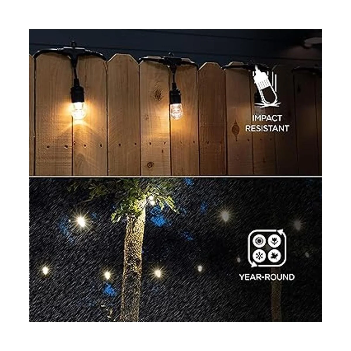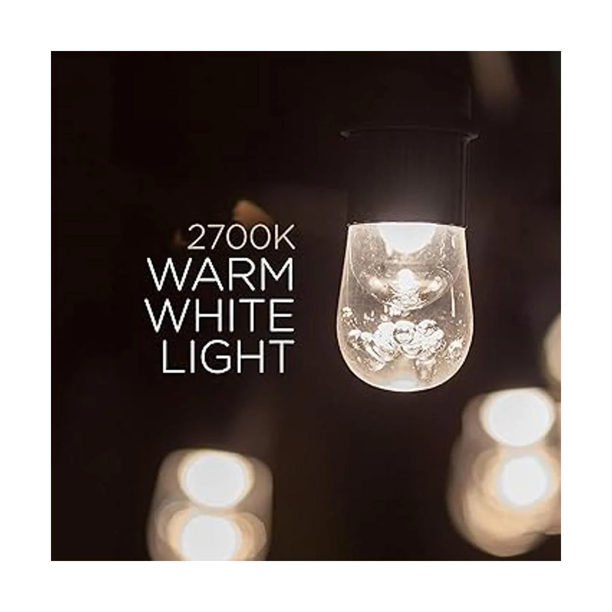 12 bombillas duraderas y resistentes al impacto de estilo Edison de acrílico que no se romperán si se caen, pisan o soplan en el viento. Construcción de grado comercial y listado UL para instalación permanente en interiores y exteriores, diseñado para soportar la exposición durante todo el año a los elementos por lo que solo tienes que configurarlos una vez.