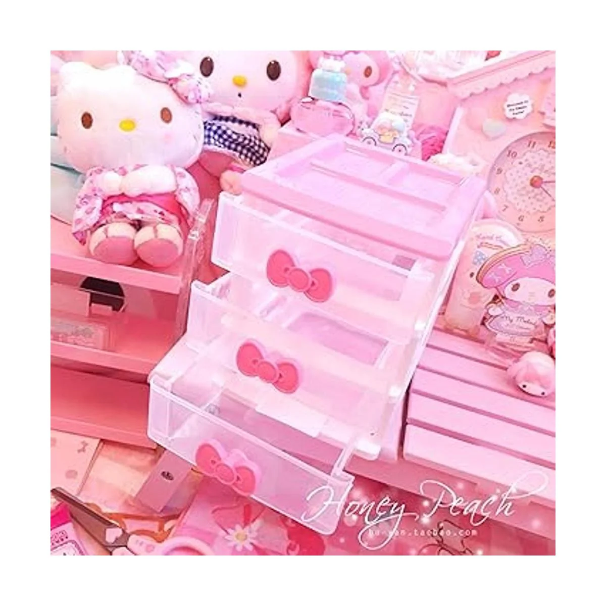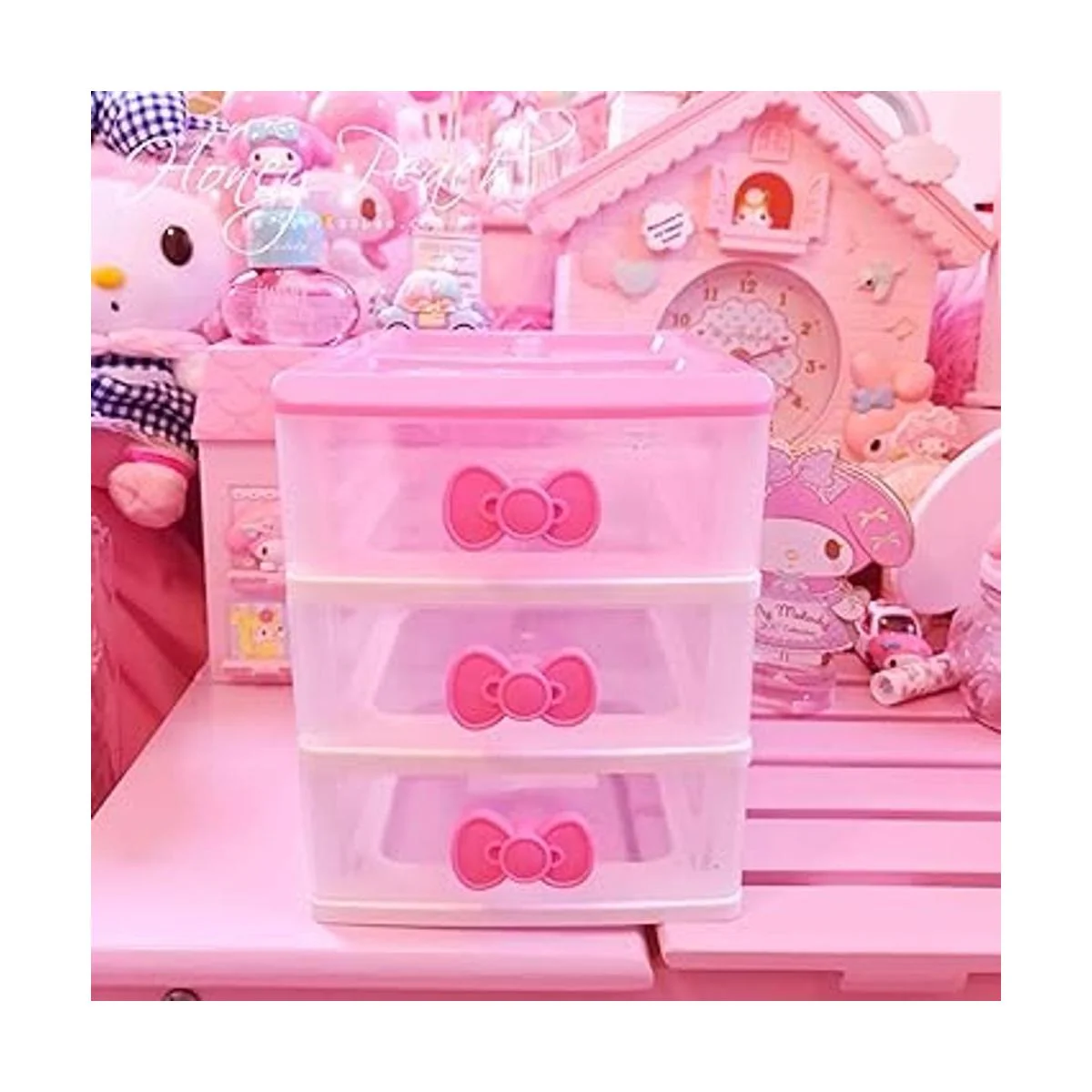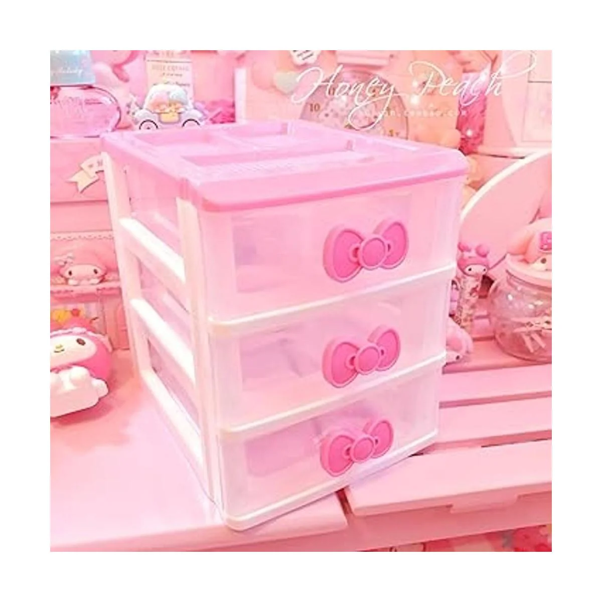 Encantadores armarios de almacenamiento de recepción, caja de escritorio, organizador de maquillaje con cajones de recepción de escritorio de tres niveles N lazo rosa
