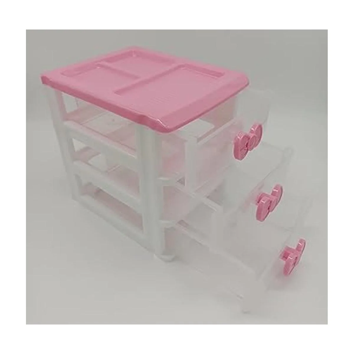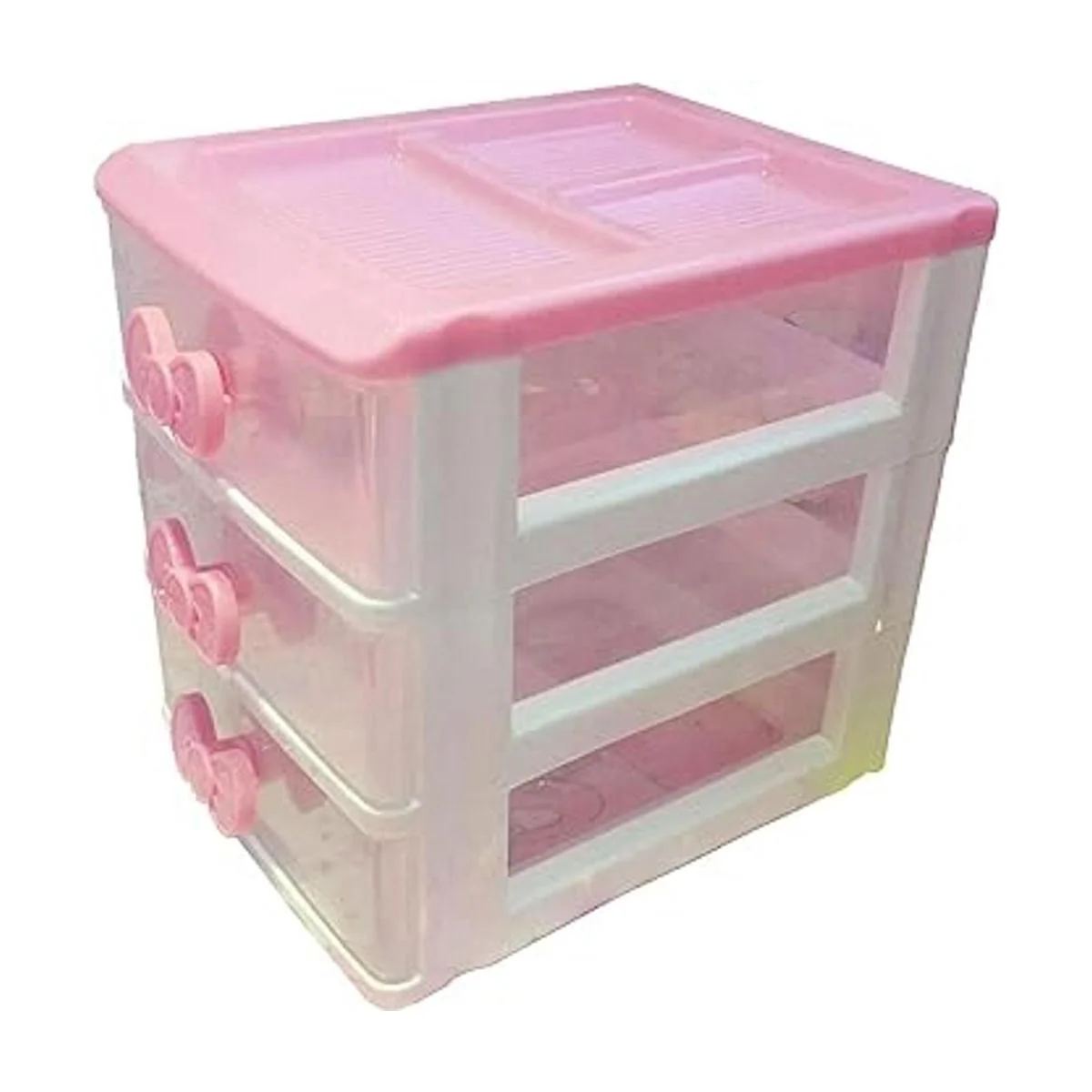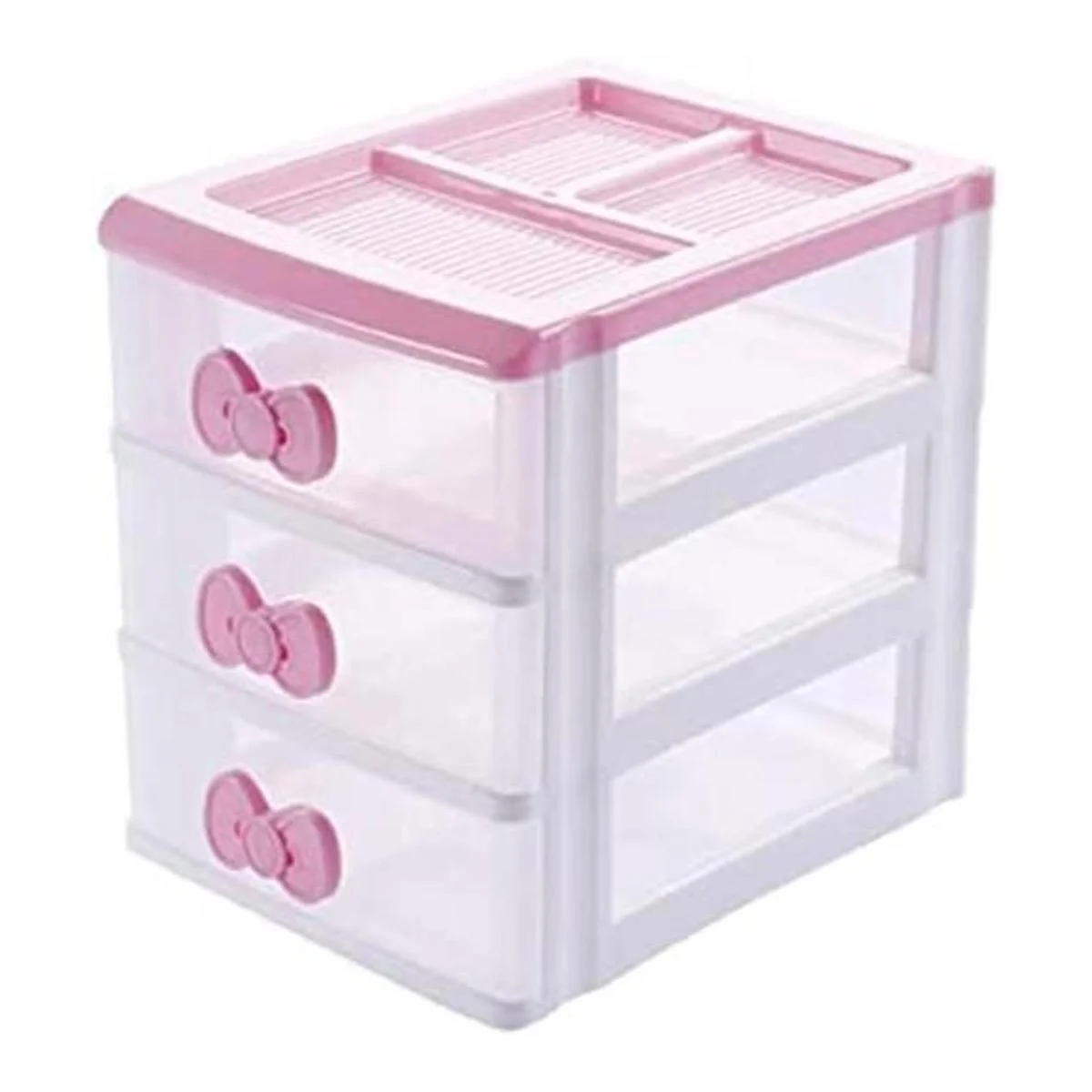 Bonita caja de recepción rosa para niñas, organizador de maquillaje, organizador compacto de escritorio de 3 cajones