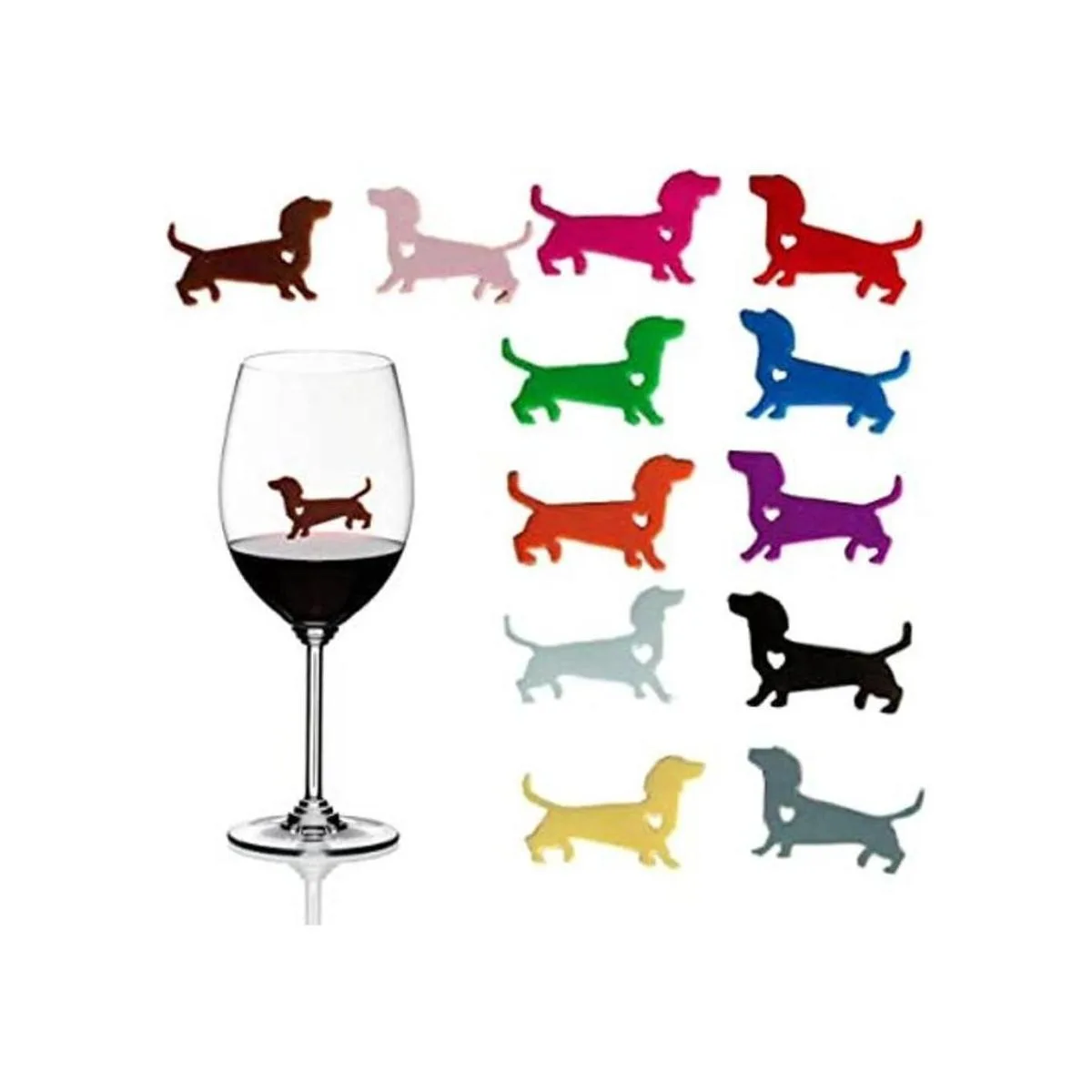 Encantos de copa de vino Marcadores para copas de vino, encantos de gato, taza de silicona, etiqueta de botella de bebidas, etiquetas magnéticas, marcadores y etiquetas para fiestas, bodas, eventos de degustación, cócteles, Martinis, champán, 12 unidades, Dog