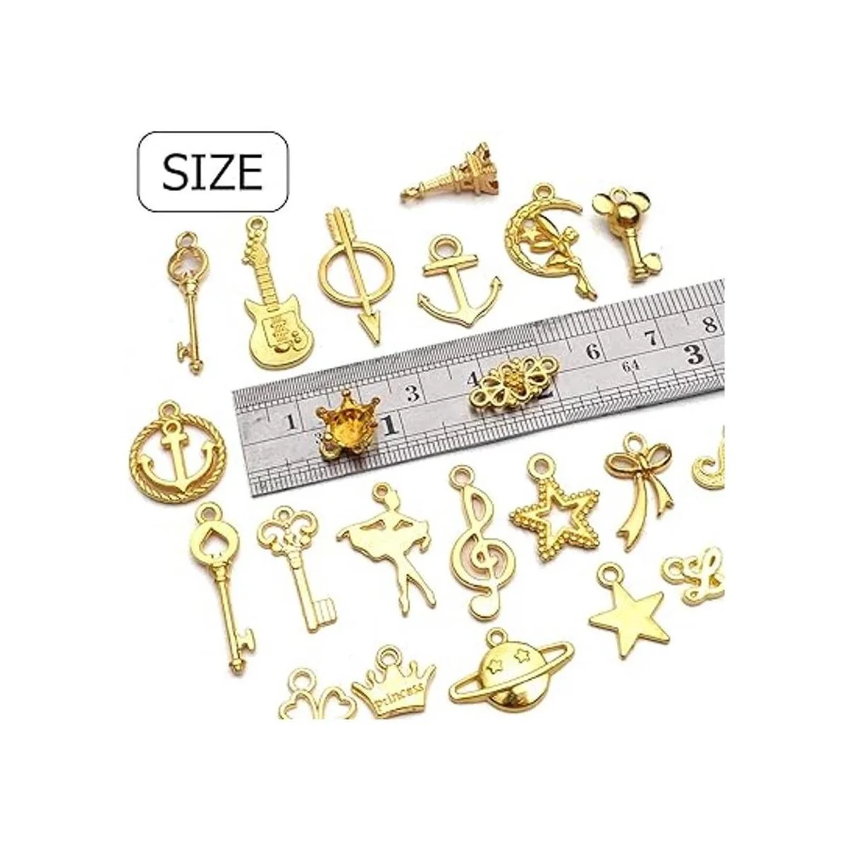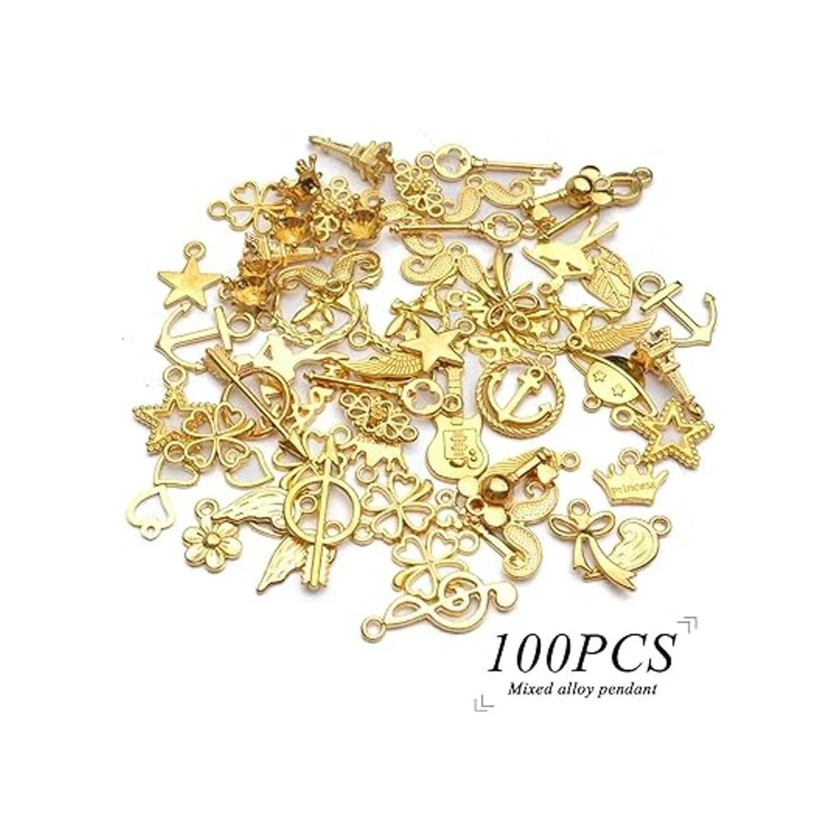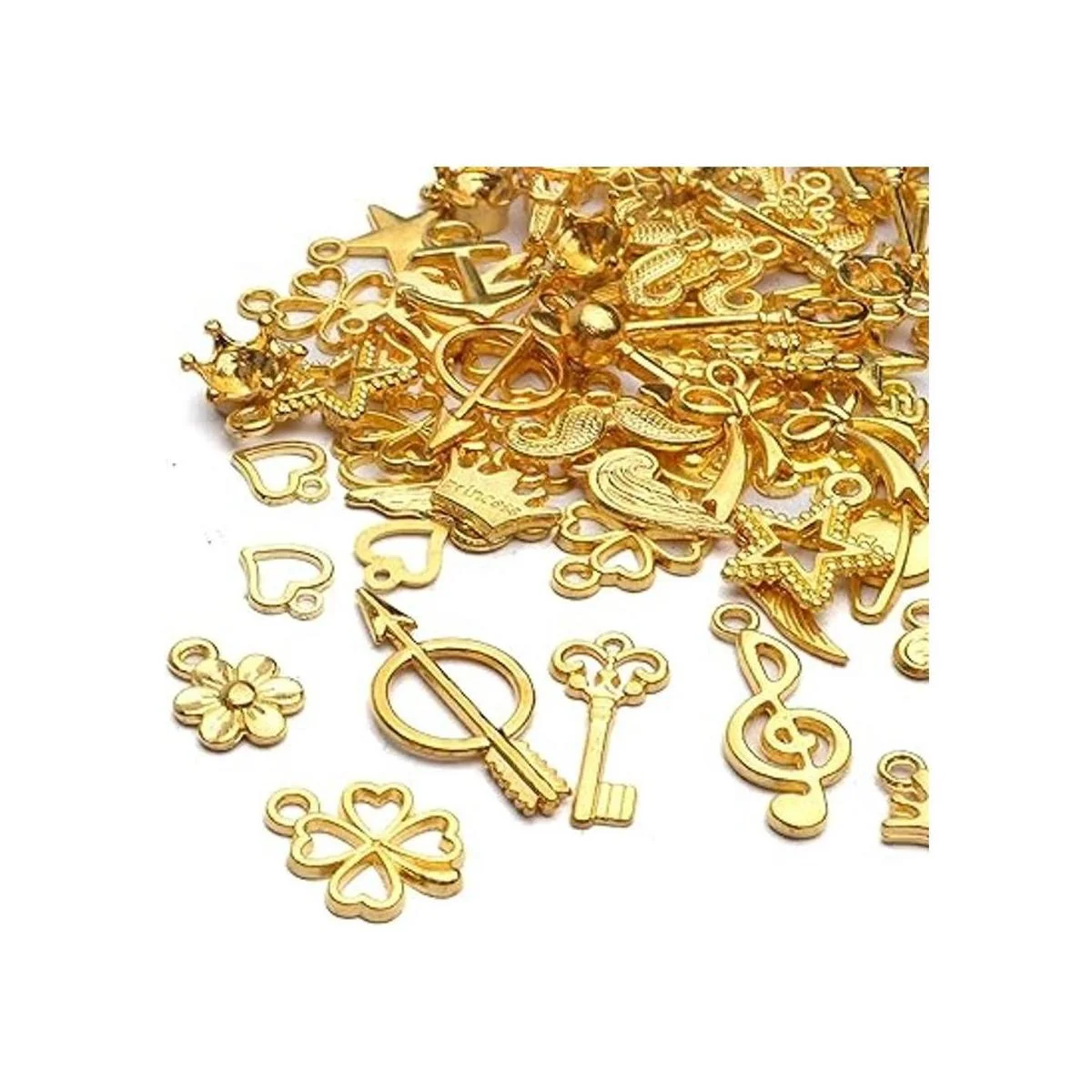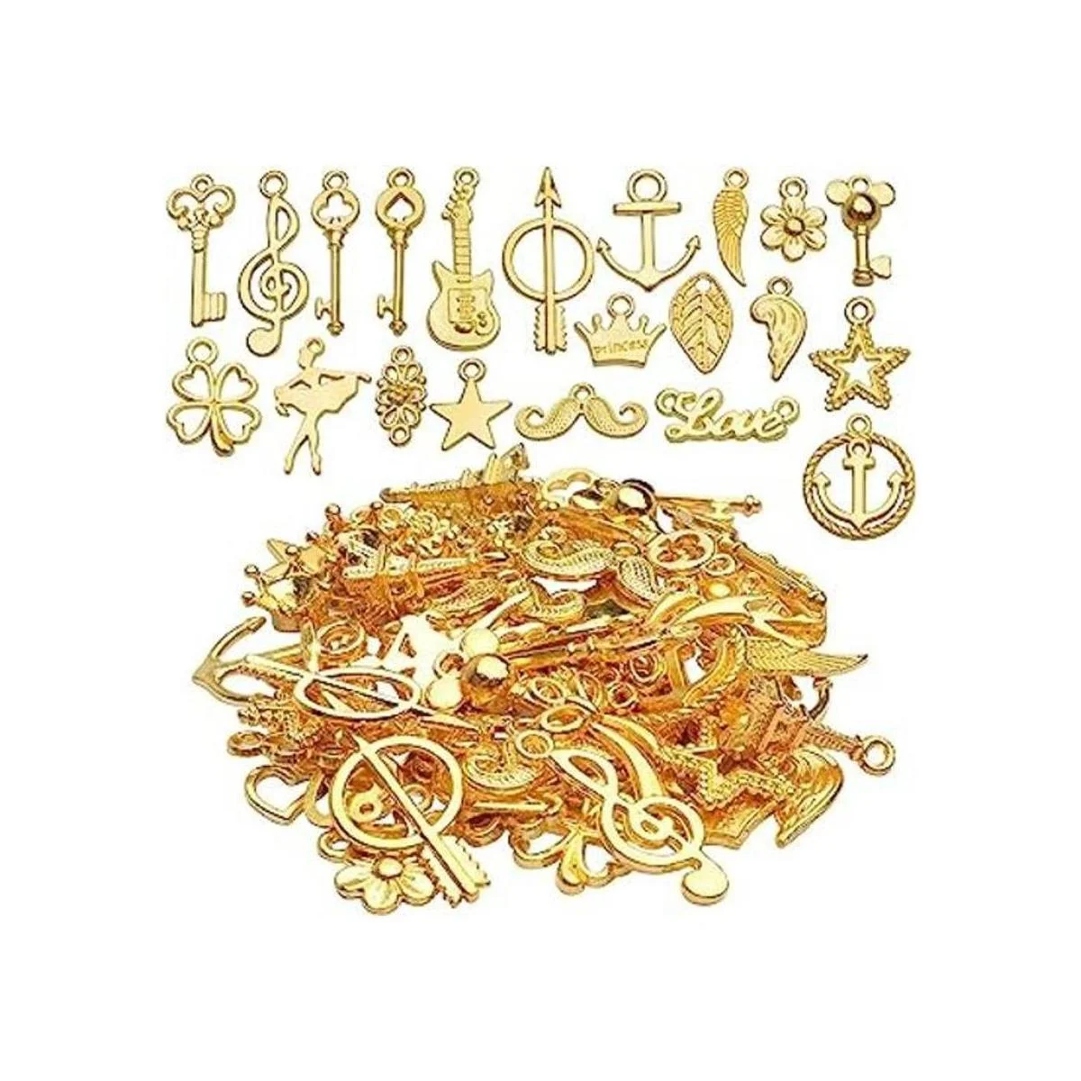 Encantos de oro, 60 piezas al por mayor mezclados de oro encantos colgantes de fabricación de joyas resultados para bricolaje pendientes collar pulseras llaveros manualidades
