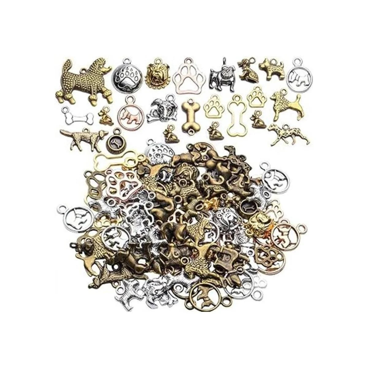 Encantos de perro a granel, 3.53 oz al por mayor mezclado de animales antiguos encantos de aleación de perro de mascotas colgantes de artesanía suministros de joyería hallazgos accesorio para bricolaje collar pulsera pendiente artesanía