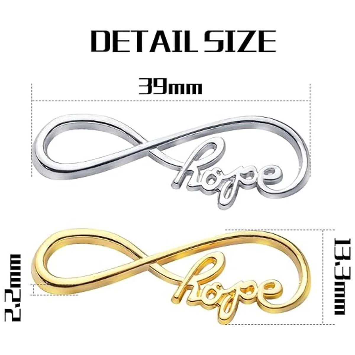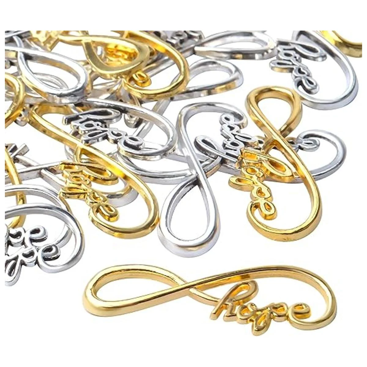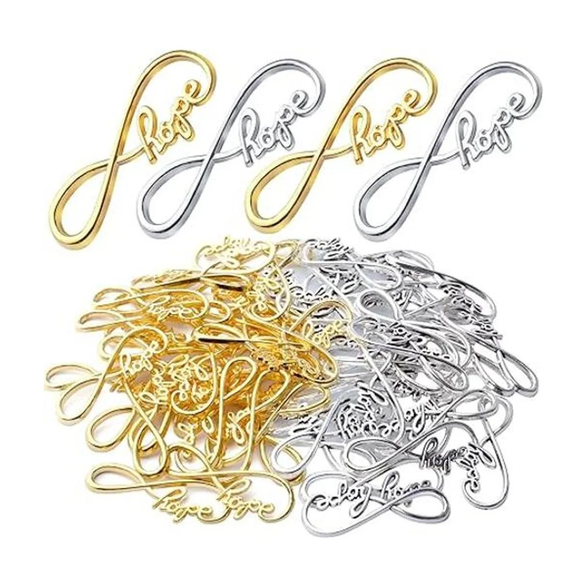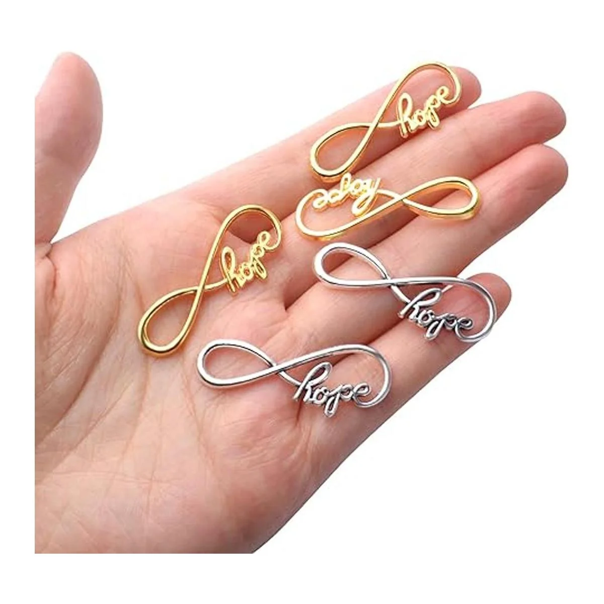 Diseño exquisito: cada uno de los colgantes del infinito está tallado con letras de esperanza, forma de símbolo de infinito creativo y elegante, aspecto delicado y hermoso. El diseño sofisticado e ideal añade acentos llamativos que puedes llevar a todas partes.