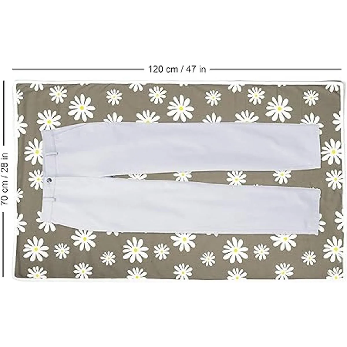 Calidad: tejido impreso de algodón puro laminado con almohadilla de fibra para un planchado suave y rápido. Alfombrilla de silicona unida en una esquina para mantener la plancha caliente. El tejido impreso es resistente a las quemaduras y no se decolora fácilmente. La almohadilla de fibra protege la mesa o la cama de quemaduras, así como permite que el vapor pase y también mantiene el calor para un planchado rápido.